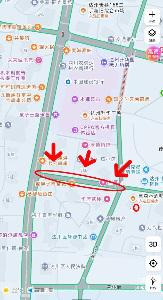 这个路确实,有天有个车停到地图那个川耳匠哪里,中间有矮的隔离栏杆,升华地库出来那个车转弯转不过来,一直堵到升华广场车库出口。