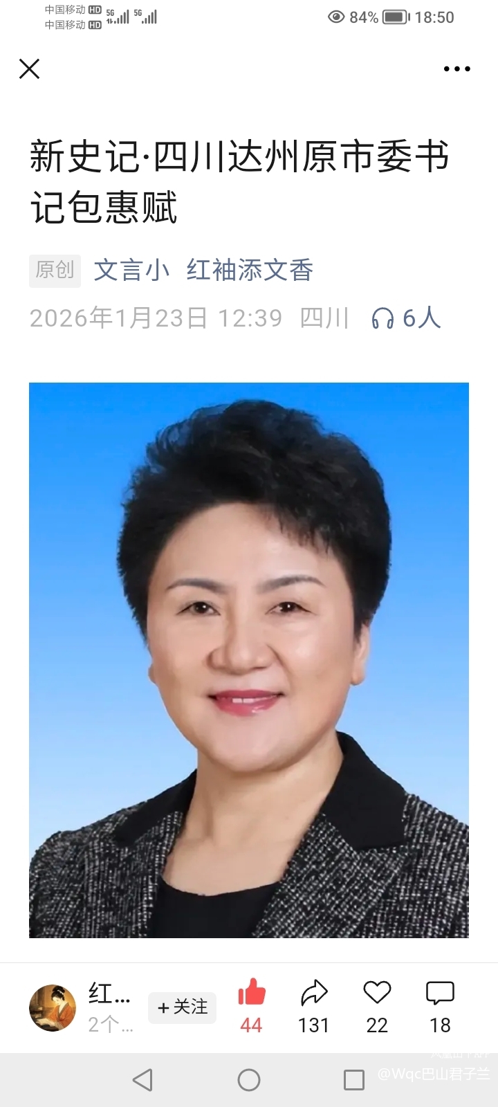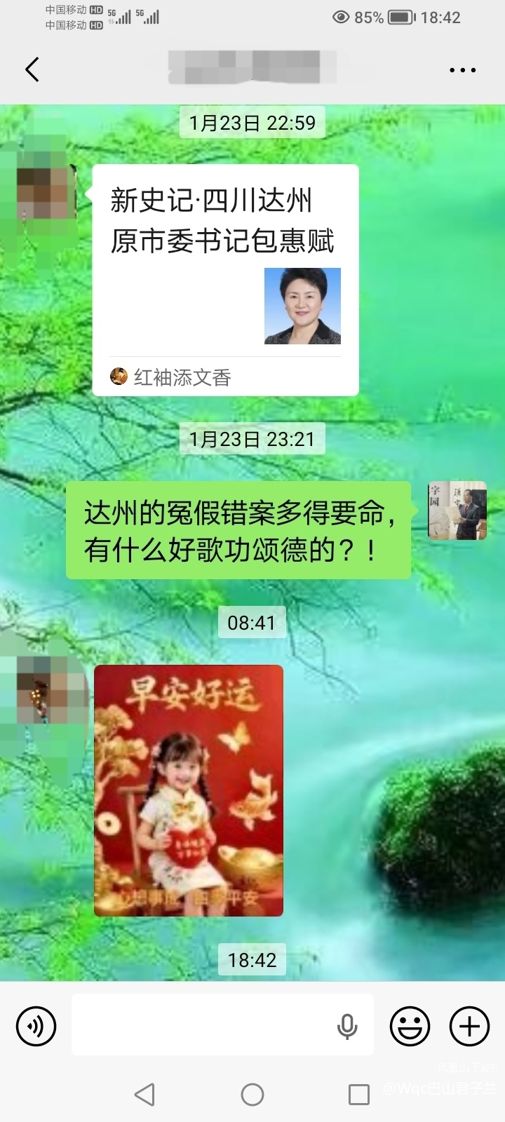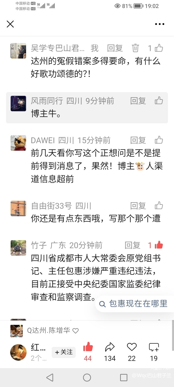 2016年1月23日,居然有人公开发表《新史记·四川达州原市委书记包惠赋》,极尽跪舔之能事。我留言:“说达州的冤假错案多得要命,有什么好歌功颂德的?!”