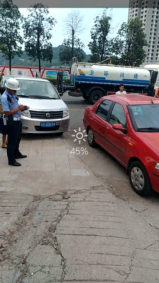 经查,2017年8月16日8时30分左右,我支队直属一大队3中队辅警潘彦宇在东延线保饰洁汽车生活广场路口执勤时,川SQ0079的驾驶员(网民“东方洁具东哥”)向执勤人员潘彦宇求助,说有一辆红色的小车挡住了他去库房的路。由于当时是早高峰时段,为确保东延线畅通,执勤人员潘彦宇就给网民“东方洁具东哥”说:“你去看下他车子上面有没有联系电话,如果有你本人给他打电话。’’网民“东方洁具东哥”打完电话后就给执勤人员潘彦宇说,叫潘彦宇去贴“飞飞”(违法停车告知单)处理当时乱停的车子(保饰洁汽车生活广场路口至网民“东方洁具东哥”所要去的库房路段是一个断头路,没划有禁停标志标线,居民停放的车辆也较多)。潘彦宇就给网民“东方洁具东哥”解释,该路段是一个断头路,没划有禁停标志标线,我们没有办法处罚只能帮你通知他。但在我们执勤人员通知红色小车驾驶人的同时,网民“东方洁具东哥”的车子就横在了保饰洁汽车生活广场路口,造成了出城车辆通行受阻。执勤人员潘彦宇就叫网民“东方洁具东哥”把车子开去绕一圈,待通知了再开过来。网民“东方洁具东哥”在倒车的同时按了一声喇叭,潘彦宇就给他说:“达州城区是禁止鸣笛的,中央环保督察组正在达州督察环保工作,交通噪声是环保督察的重点,也是我们整治的重点”。于是潘彦宇就向网民“东方洁具东哥”敬礼并请他出示驾驶证和行驶证以教育的方式批评他。网民“东方洁具东哥”就说潘彦宇故意刁蛮他,故意收拾他(当事人当时未随车携带驾驶证、行驶证及有效证件)。潘彦宇就对他说驾驶机动车必须随车携带驾驶证和行驶证。网民“东方洁具东哥”解释说他车子从好一新行驶到这里没有多远忘记携带了。他说喊家里人马上送来,潘彦宇说好。