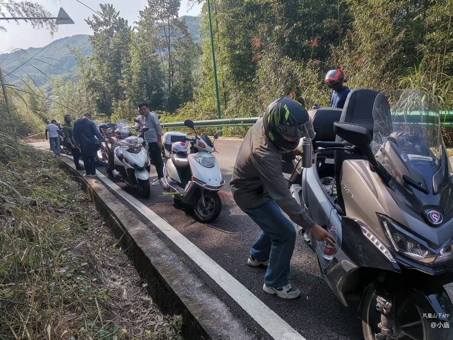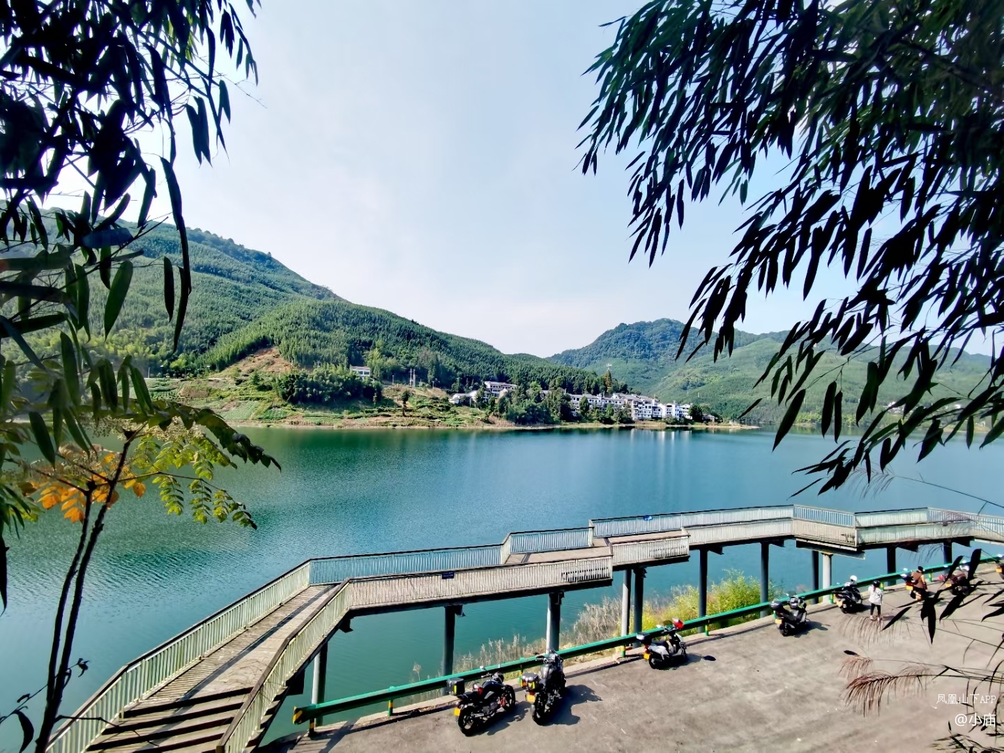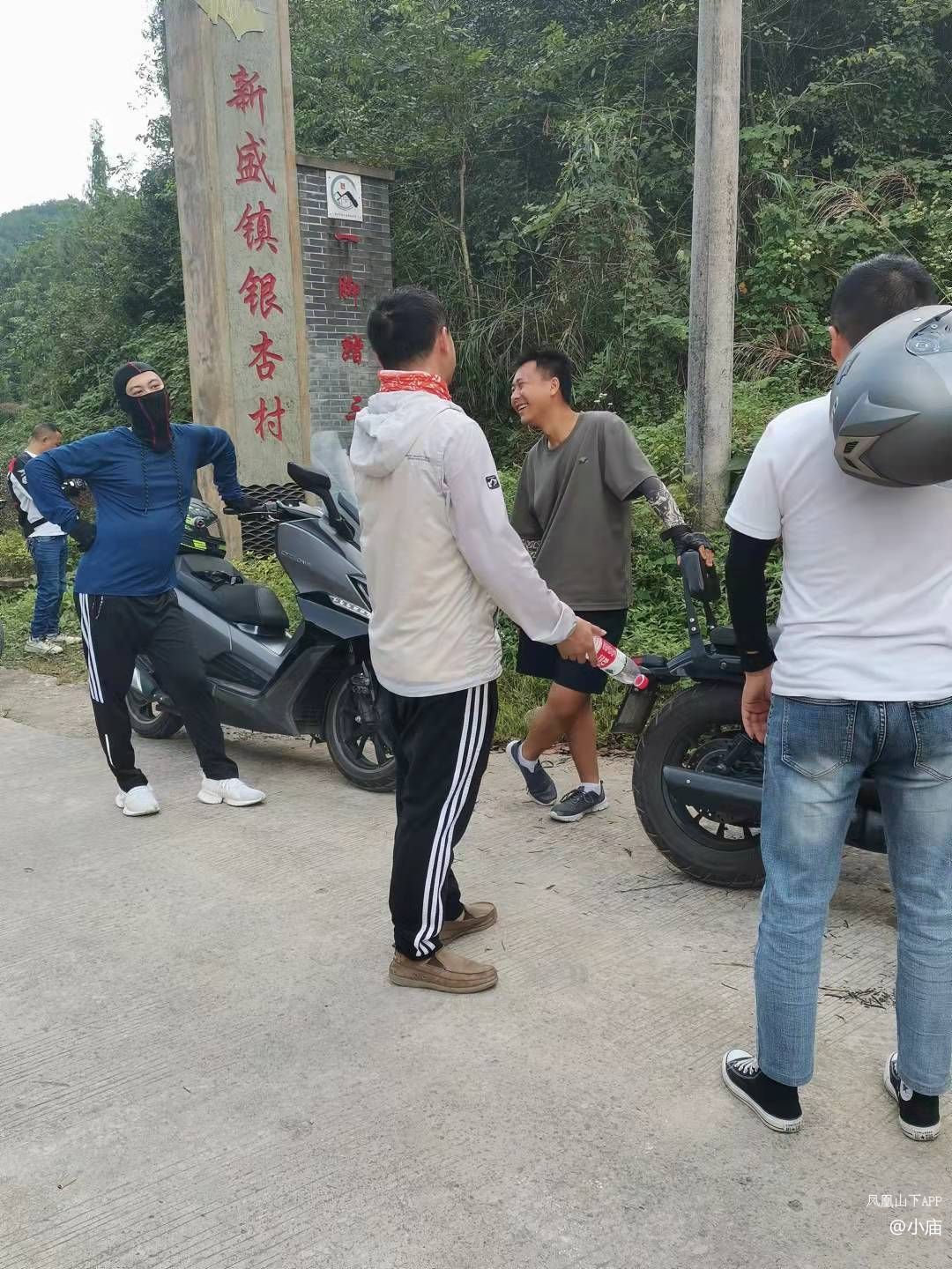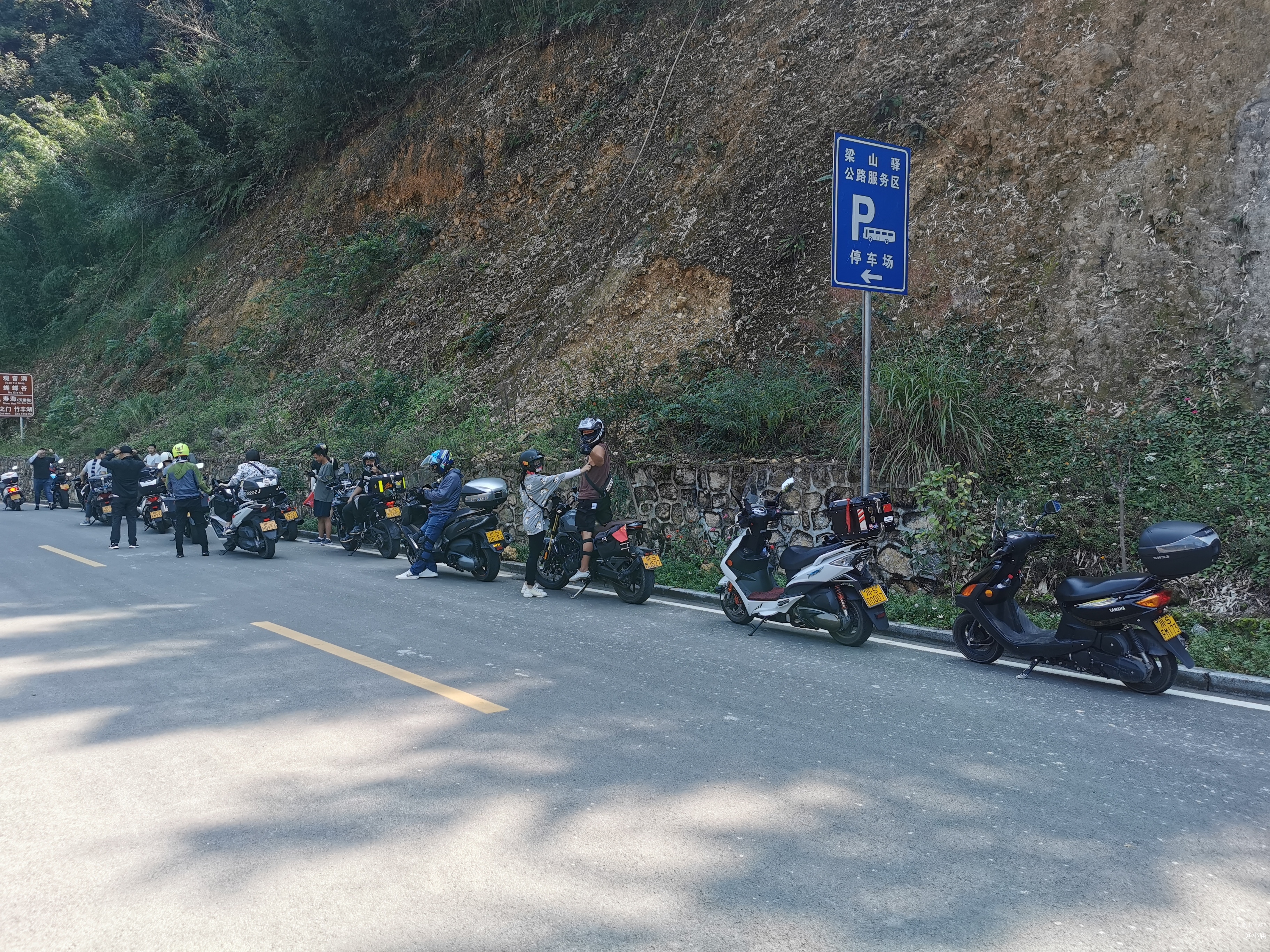 。约9点群头女骑小廖,又习惯性的迟到了,问大家…说等,不亏是女骑,有特殊待遇。跟小廖联系说还有几分钟就到,我们就等她。小廖一到我们17辆车就出发了,走江阳、亭子、大风、到麻柳小曹拉着女朋友在麻柳等我们,因为他跑了很多次了,头天就特邀请他带路,车队行至梁平袁驿镇已是中午,于是大家一商量先吃饭再去游览,点餐是车队国民党老哥点的菜,点得很巴适。午餐人均消费34元,吃得很饱,坝坝宴那种。饭后游览了百里竹海几个有名的景点就打道回府了,回城路上还在一脚踏三县休息(开江县、梁平区、达川区),还在车队老家是万家的一个车友的见意下参观了万家当地一个无名山洞,里面有很多大蝙蝠,还有钟乳石等。今天特别感谢小曹,本来说的跟女朋友回巴中老家过节的,听我说要去梁平百里竹海,便改变了自己行程跟我们带路,谢谢。希望下次与你同行!达州老狼机车欢迎你的加入