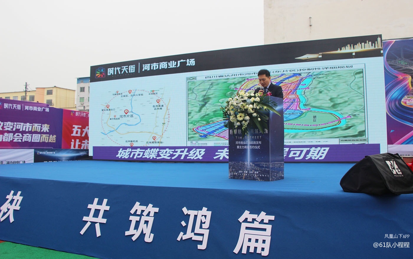 本次发布会是达州时代天街河市商业广场首轮主力商家签约仪式及新品发布会,以项目定制VCR开场,展现达州市德翔房地产开发有限公司的项目风采,也更加让人期待时代天街河市商业广场为河市新城所造的繁华之景。