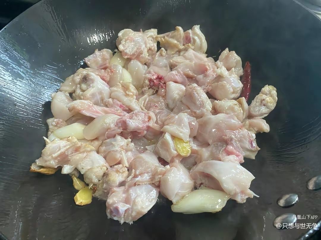 起锅烧油,加葱姜翻炒煸香,再加兔肉煸炒至变色。再加花椒、八角、孜然、辣椒、豆瓣酱和黄豆酱翻炒均匀。