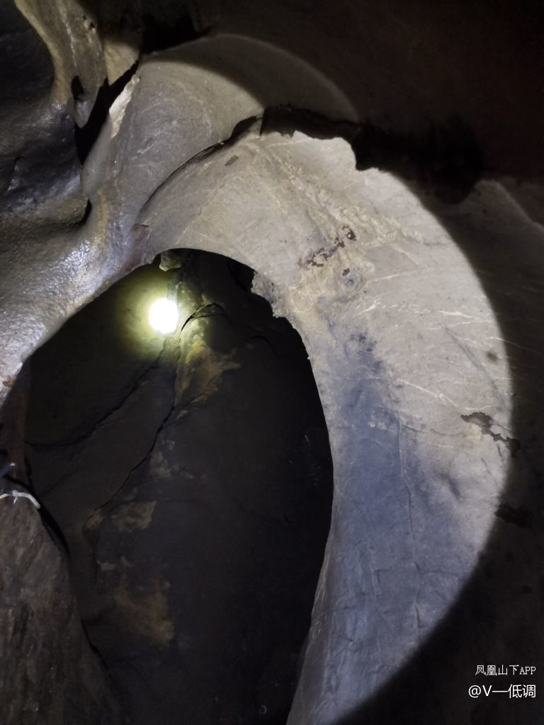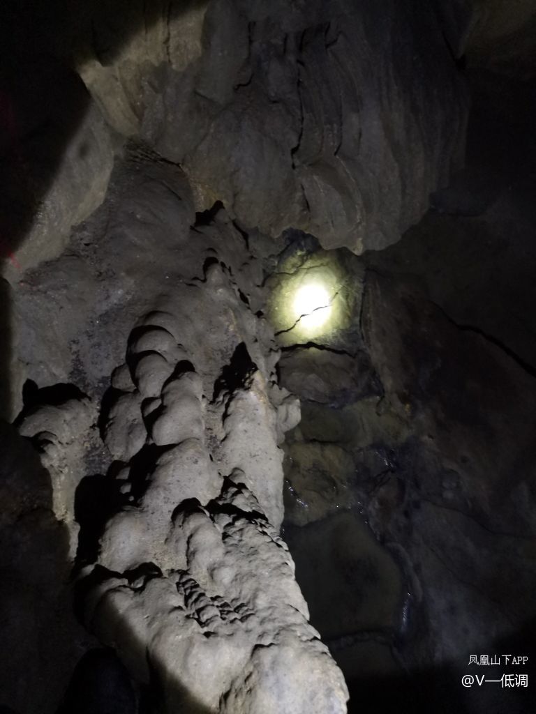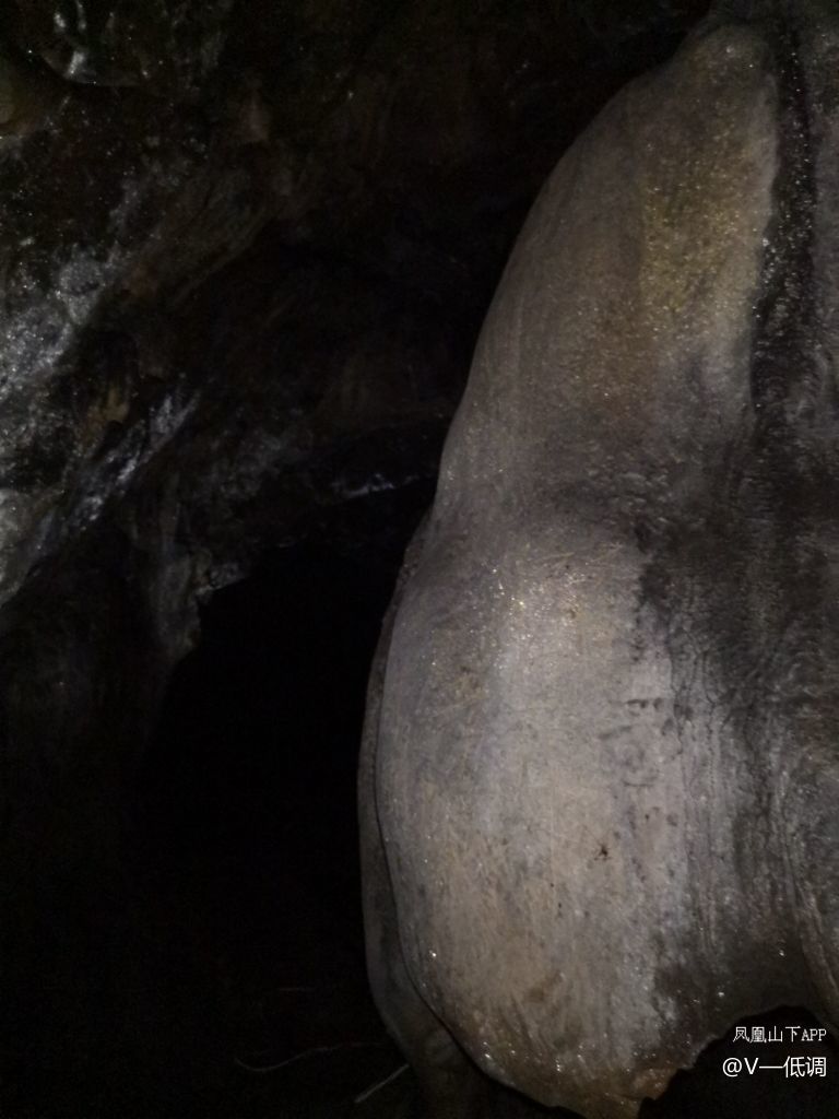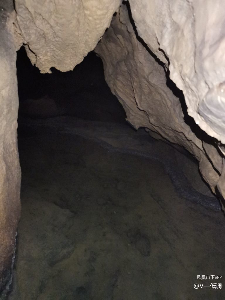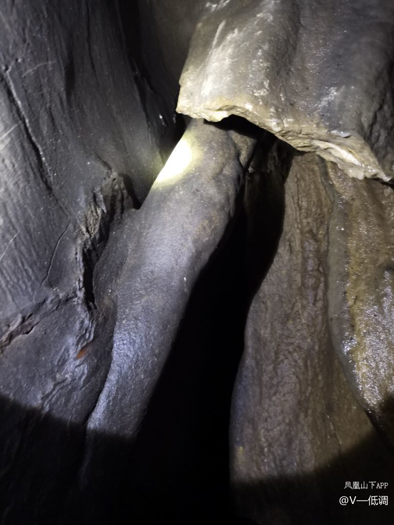 向上走了一段路,有的地方只能爬过去,虽然手机灯光不是很亮,虽然一个人有点小怕,但好奇的心使我继续往上爬