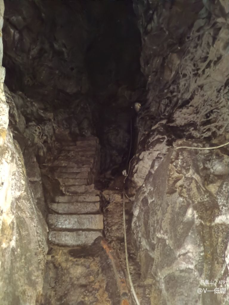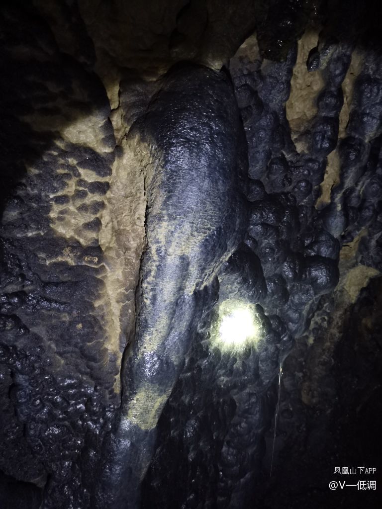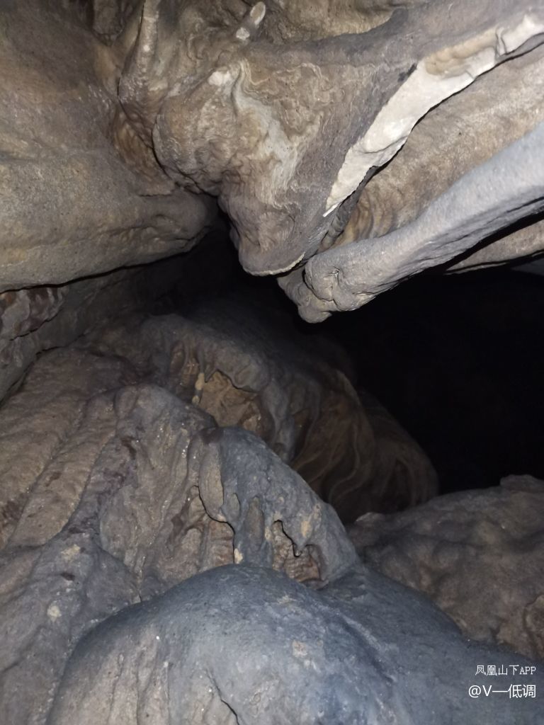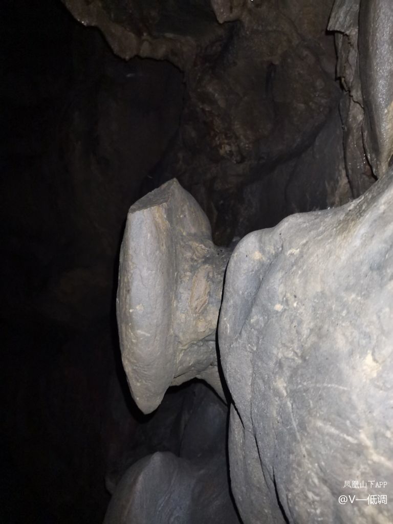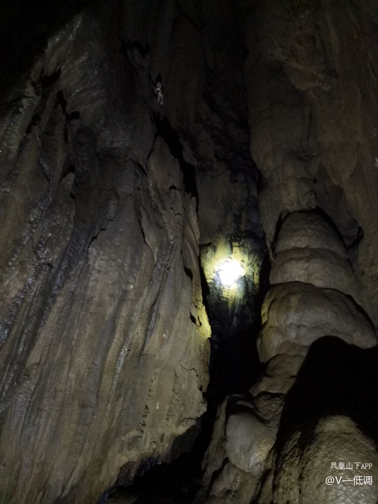 向上走了一段路,有的地方只能爬过去,虽然手机灯光不是很亮,虽然一个人有点小怕,但好奇的心使我继续往上爬