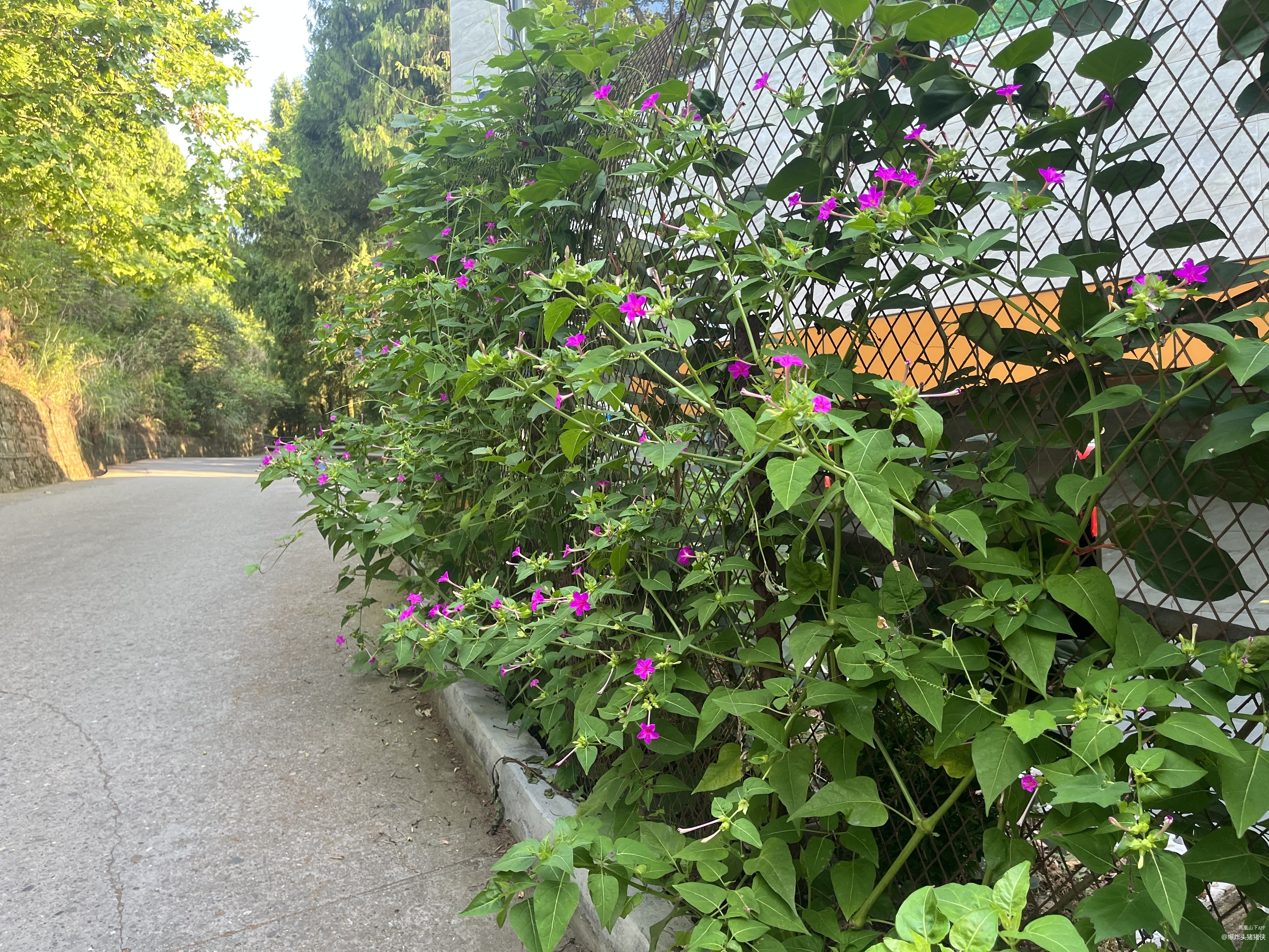山里的温度还是要比城市低一点,蓝天白云,爬山累了就停下来吹吹风休息一下,热烈的阳光穿透林间,通天梯上来这家店种的花开得正好,在此稍作休整继续向上,暑假来临,山里多了家长和孩子一起爬山的组合。