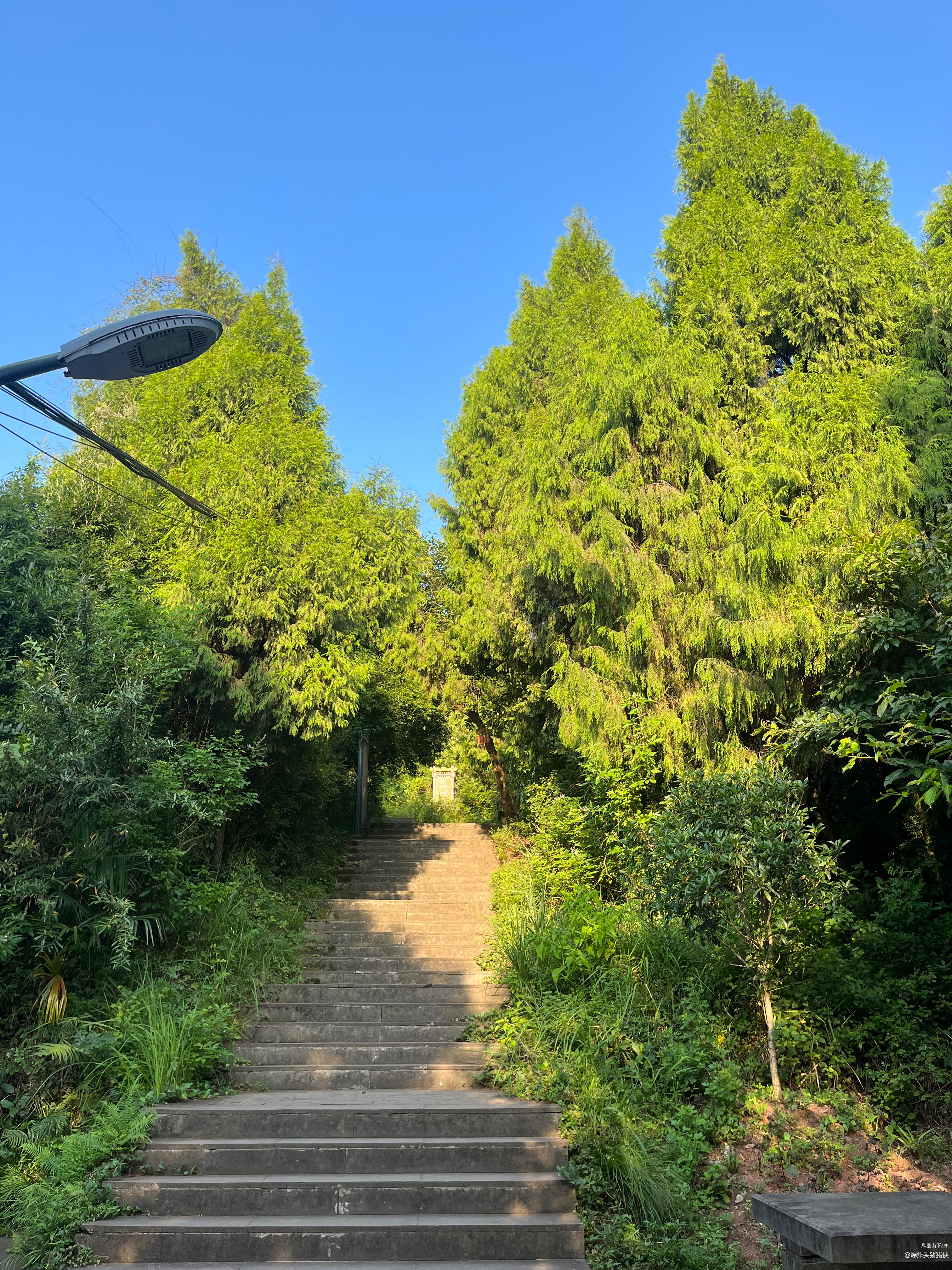 从红军亭到山顶可以说是迎着烈日向上爬,越到后面越能清晰的感受到气温的升高,这天气爬山对身体能量的消耗是肉眼可见的,笔者的衣服都被汗水打湿了,建议大家早上爬山的时候吃点东西或者带一瓶饮料能快速补充身体的能量避免头晕。