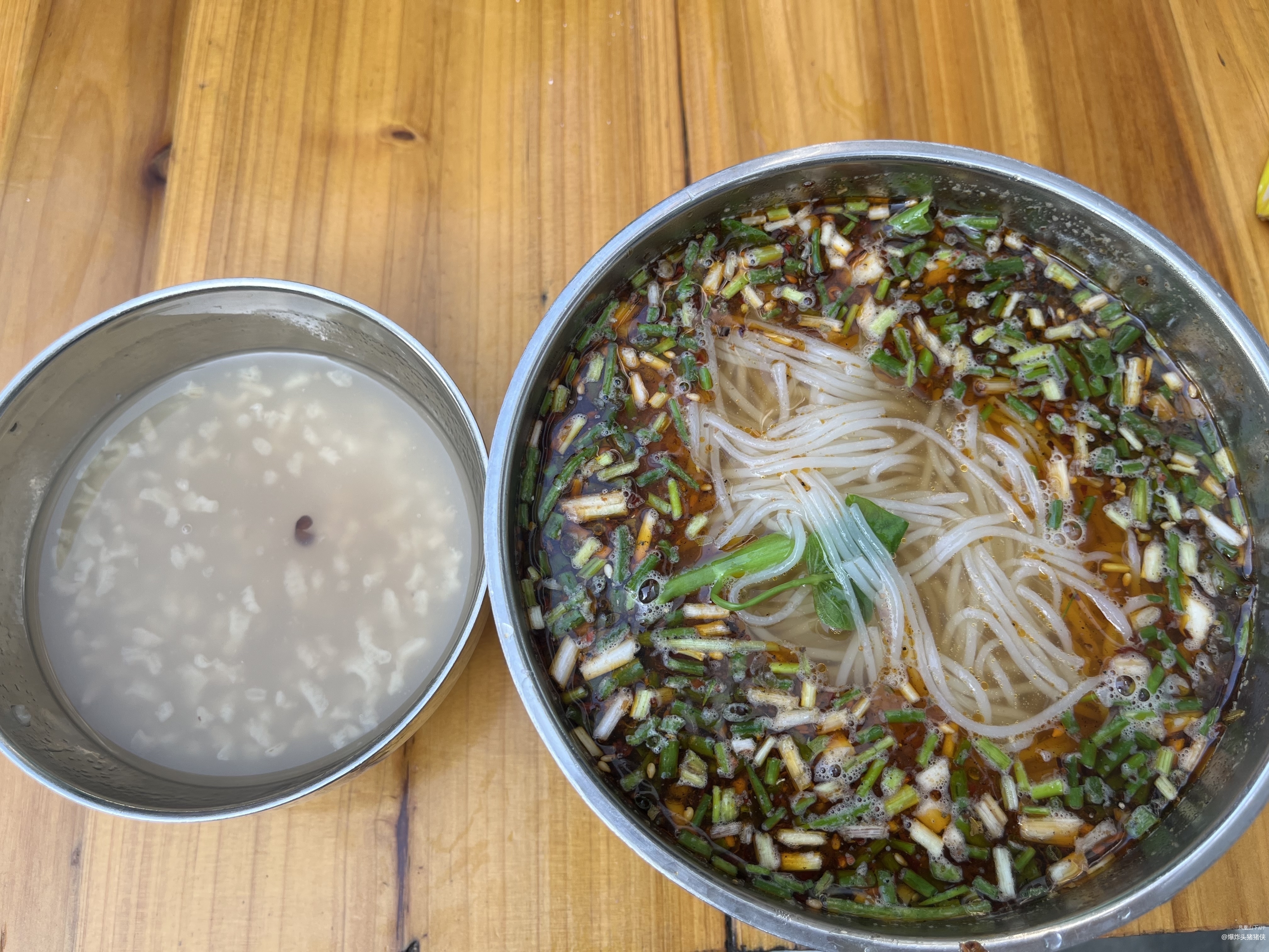 这次笔者没有吃豆花饭改吃米线了,空心菜加米线味道不能说不好只能说是很家常,下次还是吃豆花饭。(饿了吃啥子都好吃)