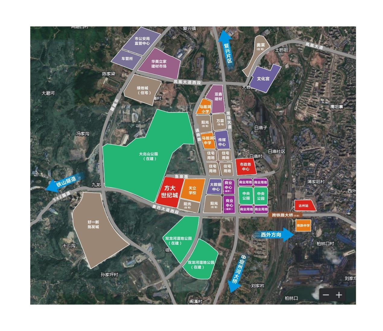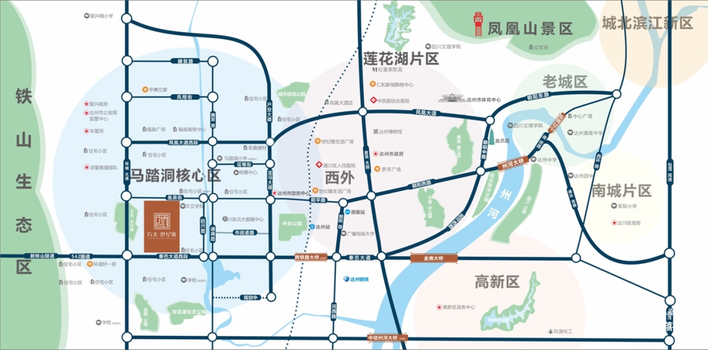 高铁机场并建,城市向南发展大势所趋:发展以金垭机场、高铁达州南站为依托的空铁产业园,拓展出达州的发展的新空间。城市因交通及产业兴起,发展向西再向南,马踏洞片区将成为达州城市新中心。