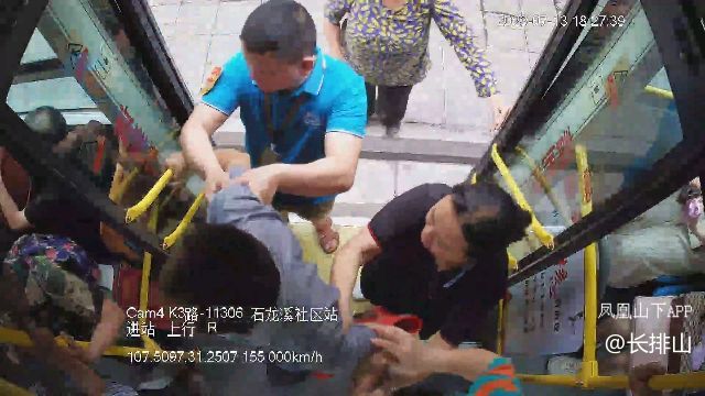 他与几名热心乘客将这位老人扶起来上了公交车,公交车秒变"救护车"以最快的速度将这名老人送往高家坝社区医院救治。