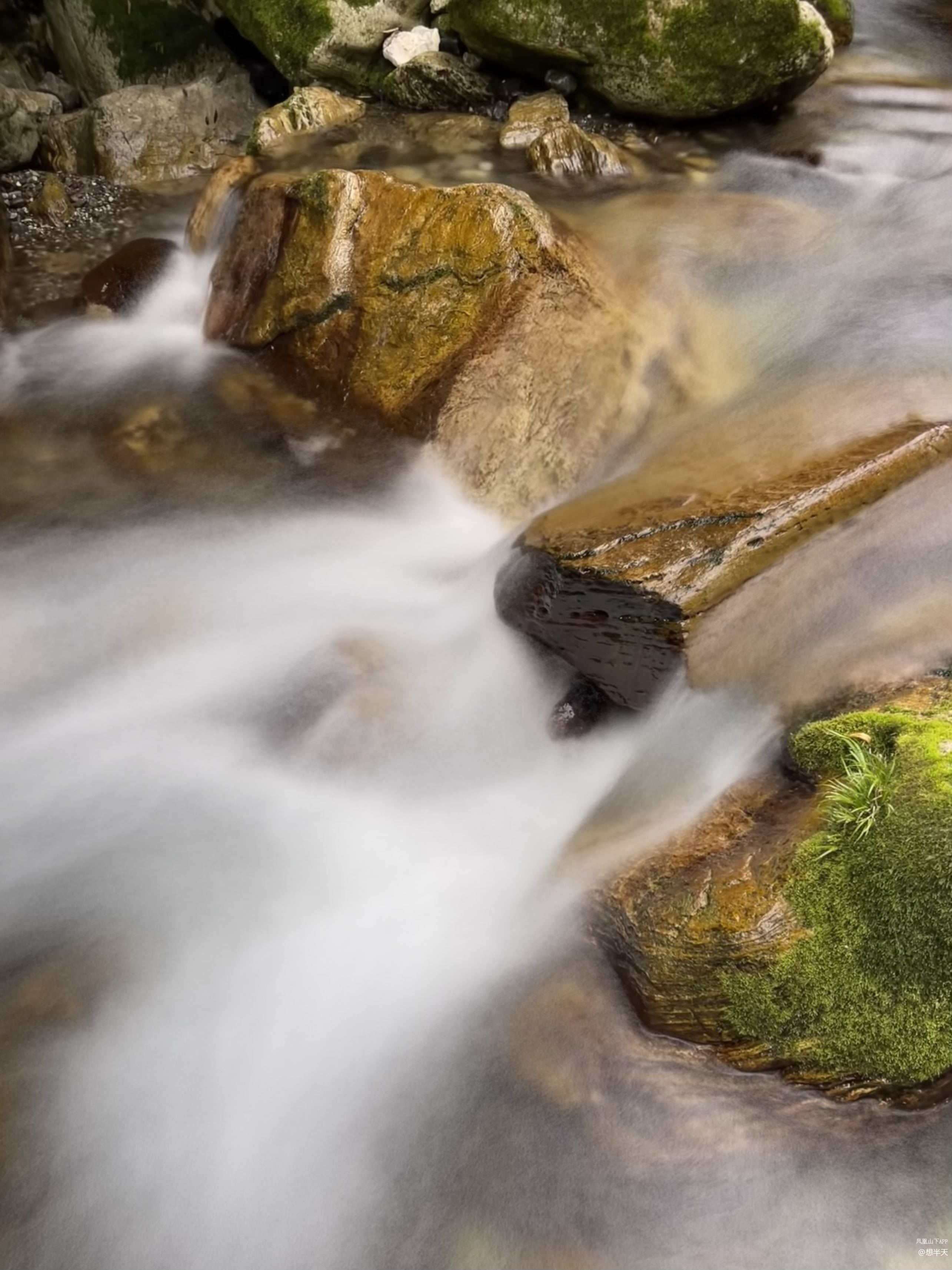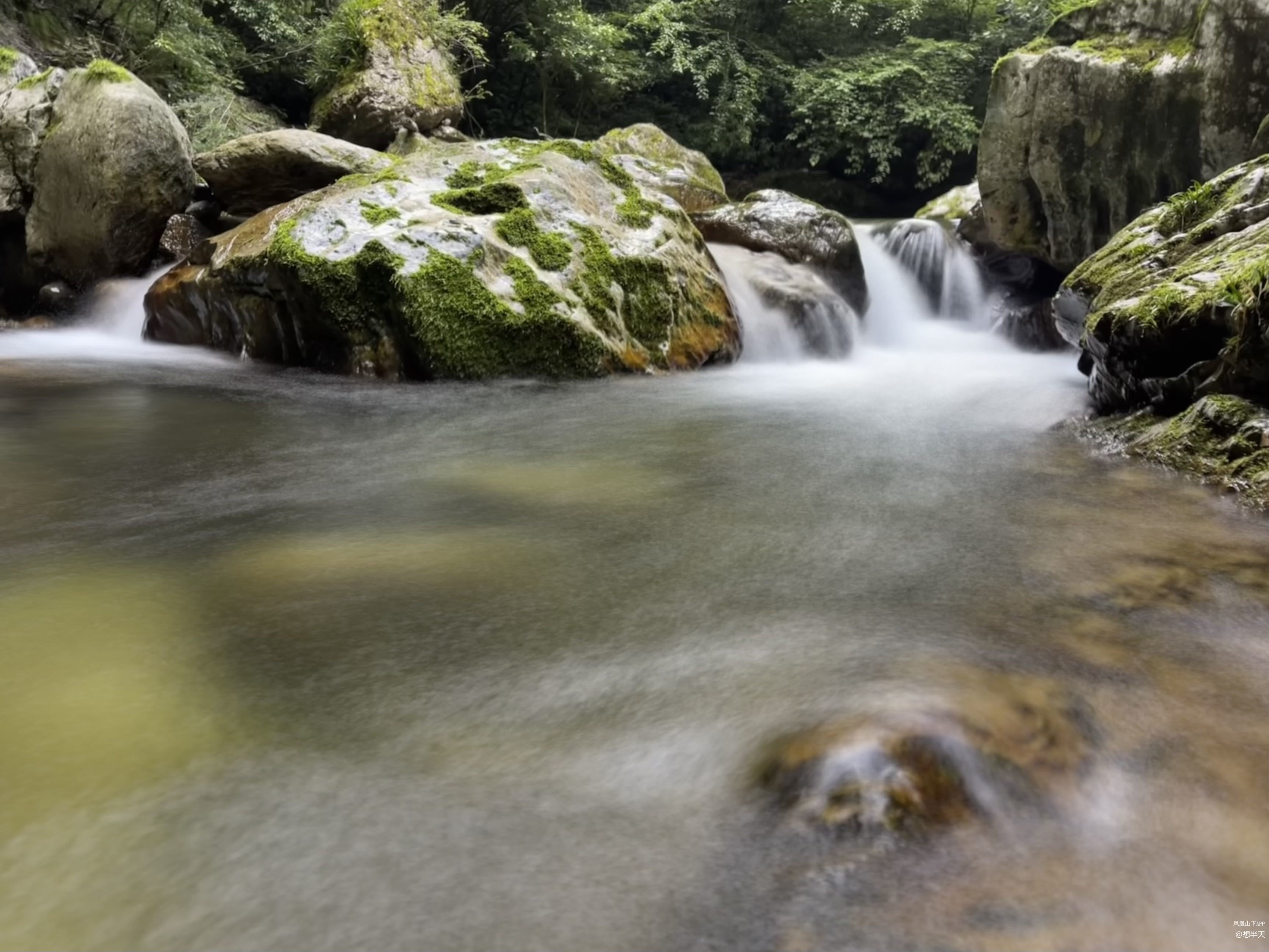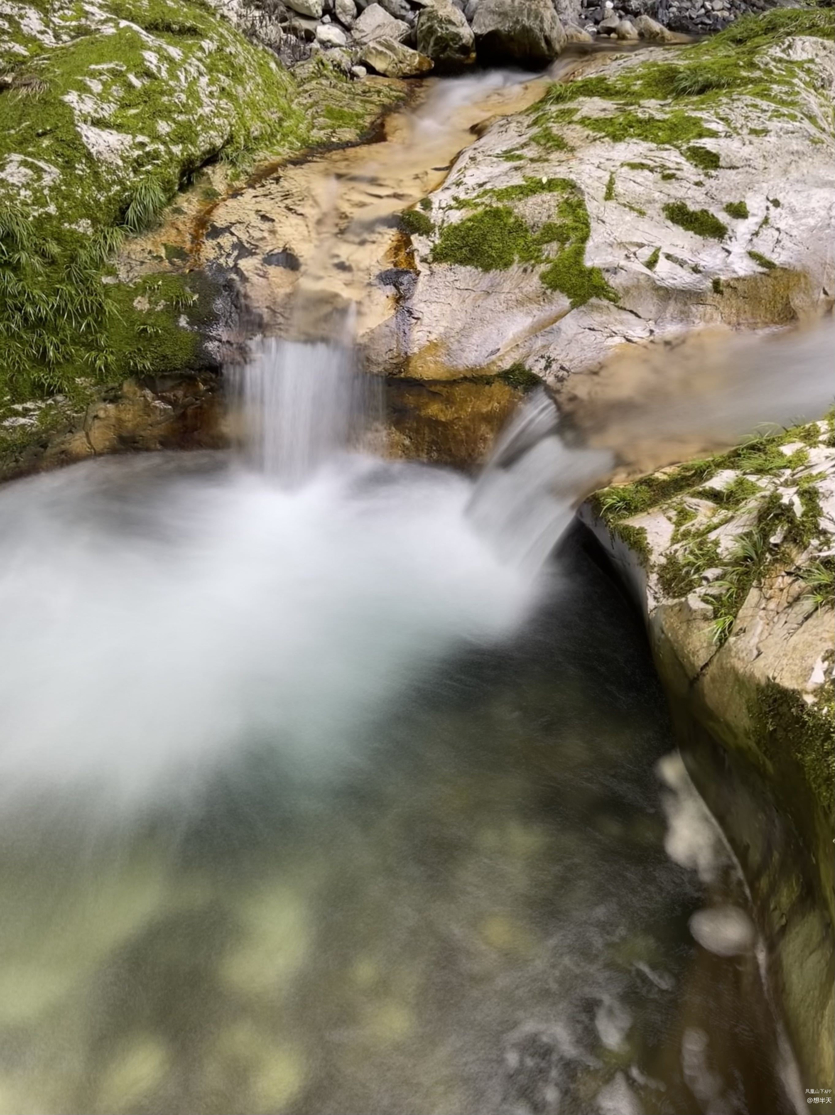 石头上的青苔越来越多,溪水越来越干净,水温越来越低,景色越来越漂亮。
