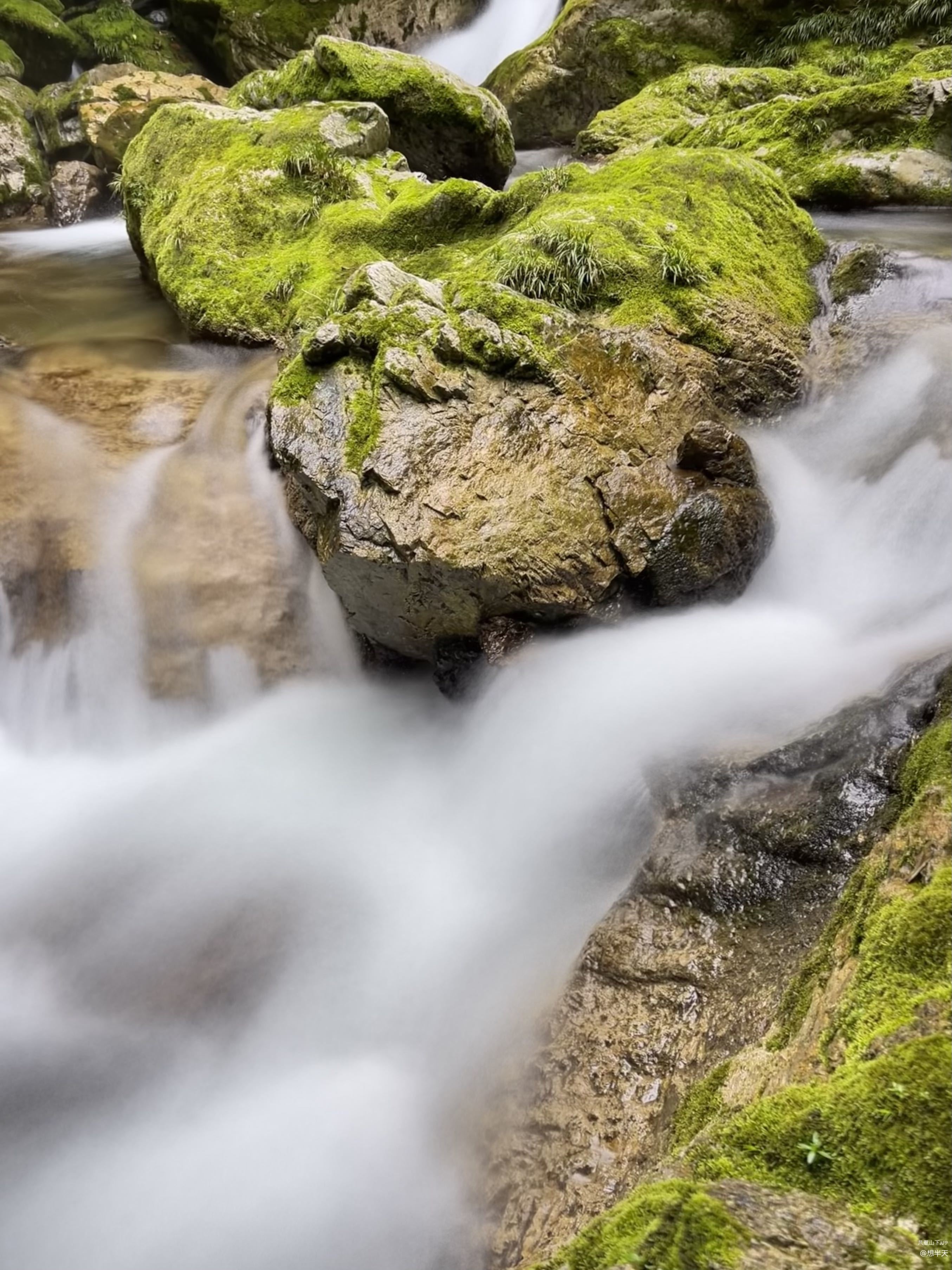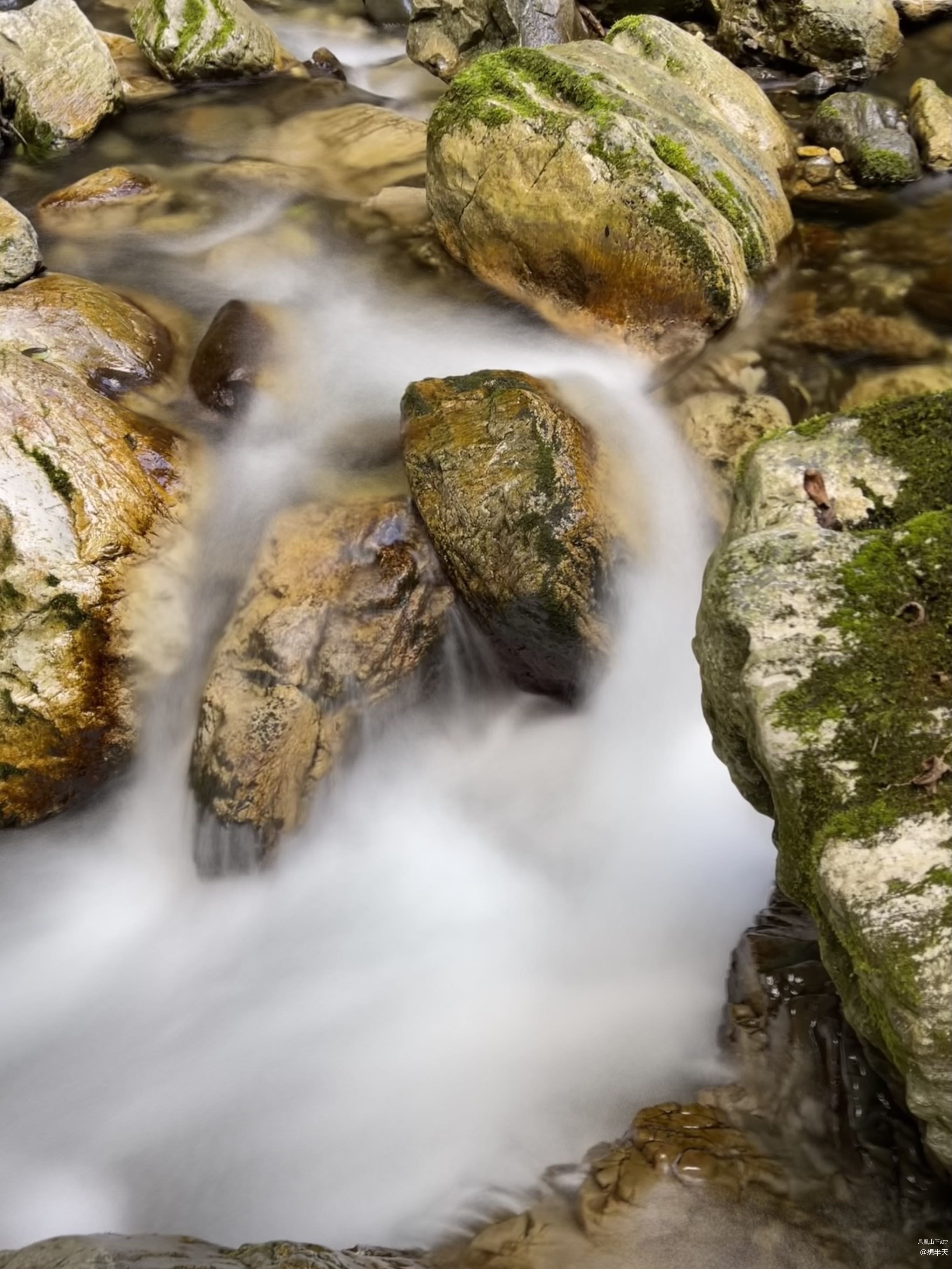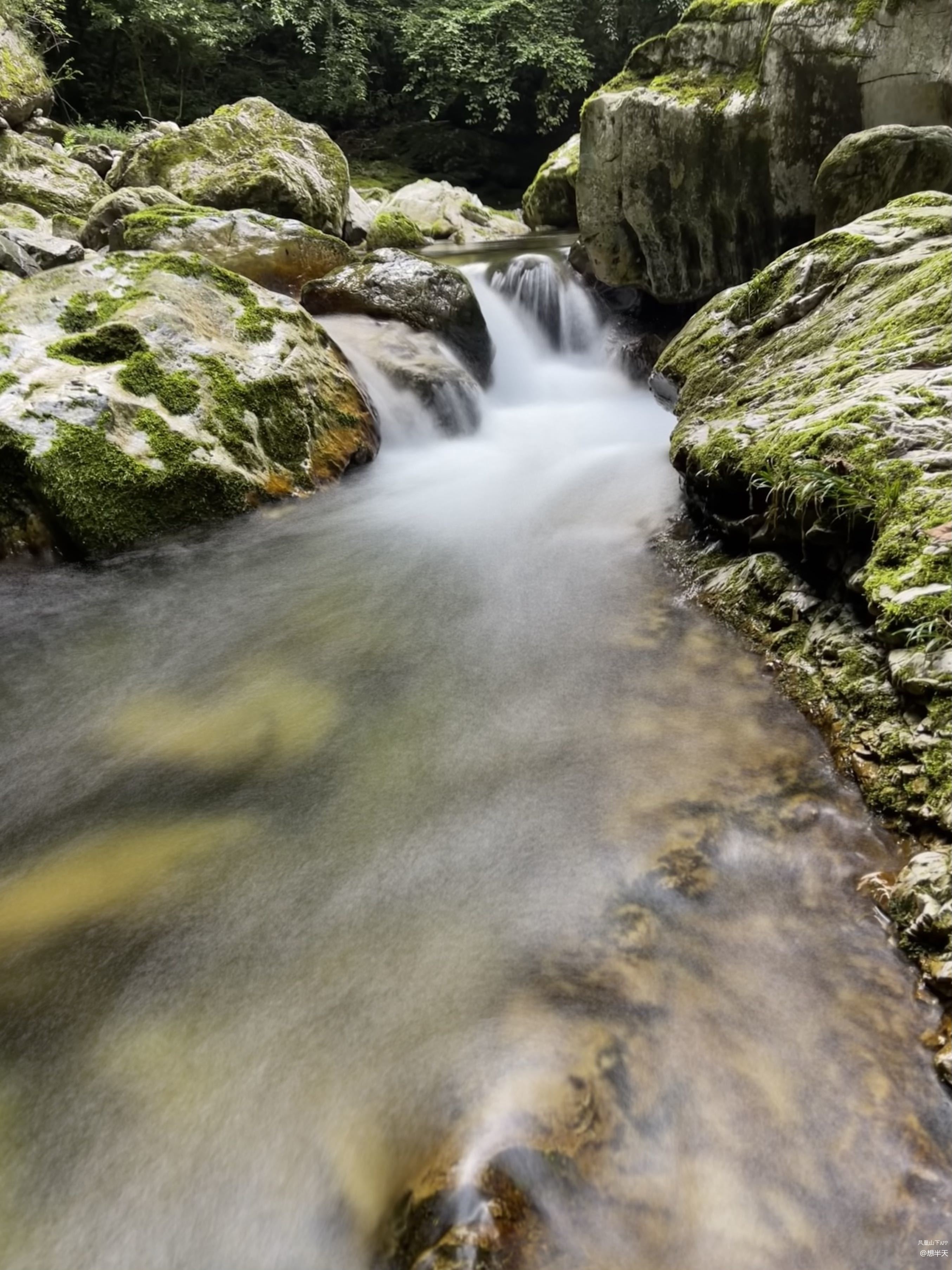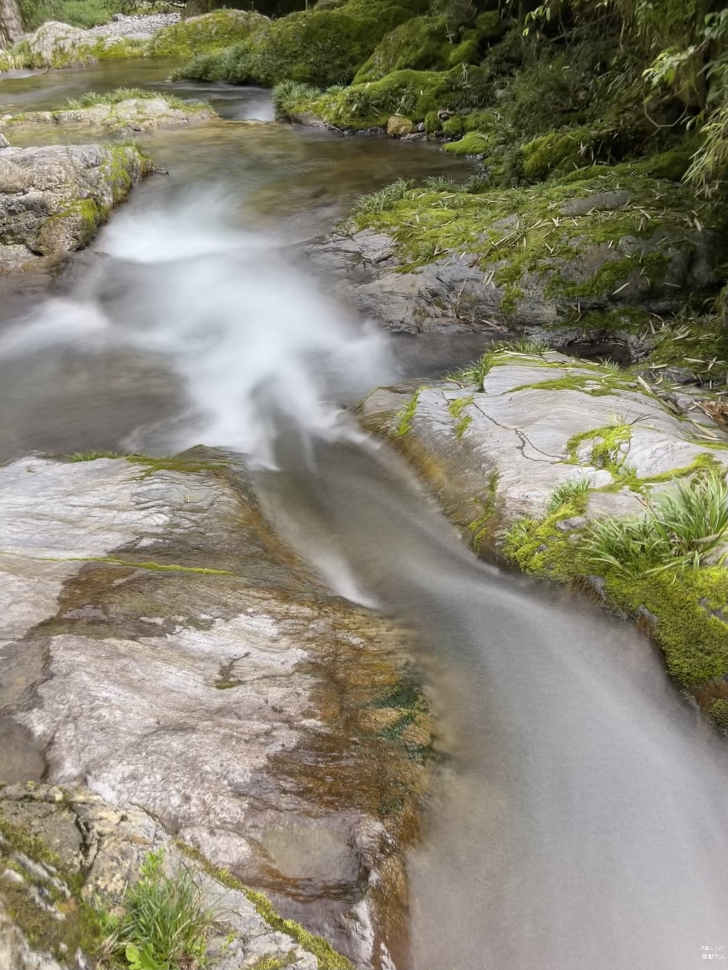 石头上的青苔越来越多,溪水越来越干净,水温越来越低,景色越来越漂亮。