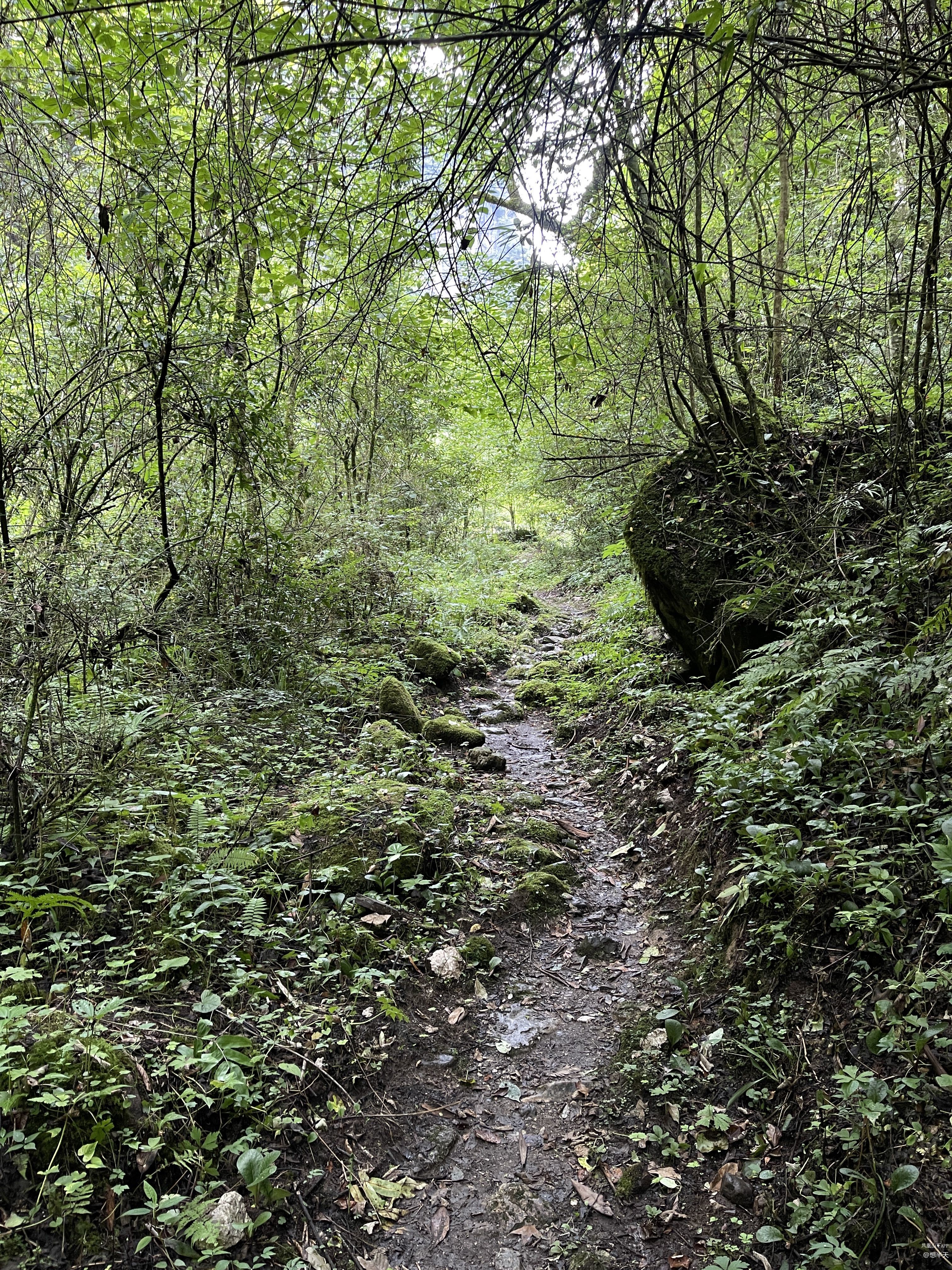 再往上走路就越来越窄了,完全就是在树荫底下。