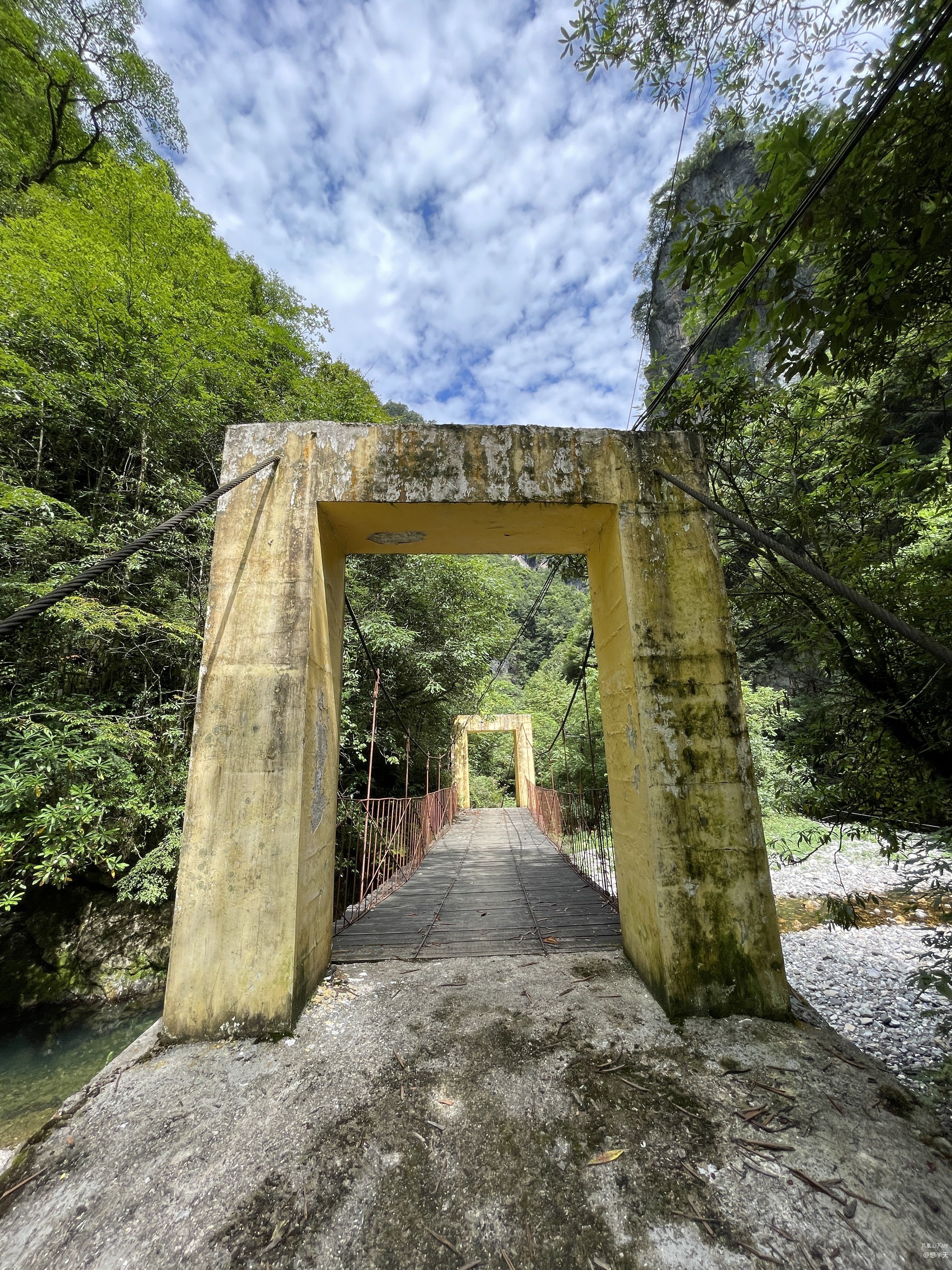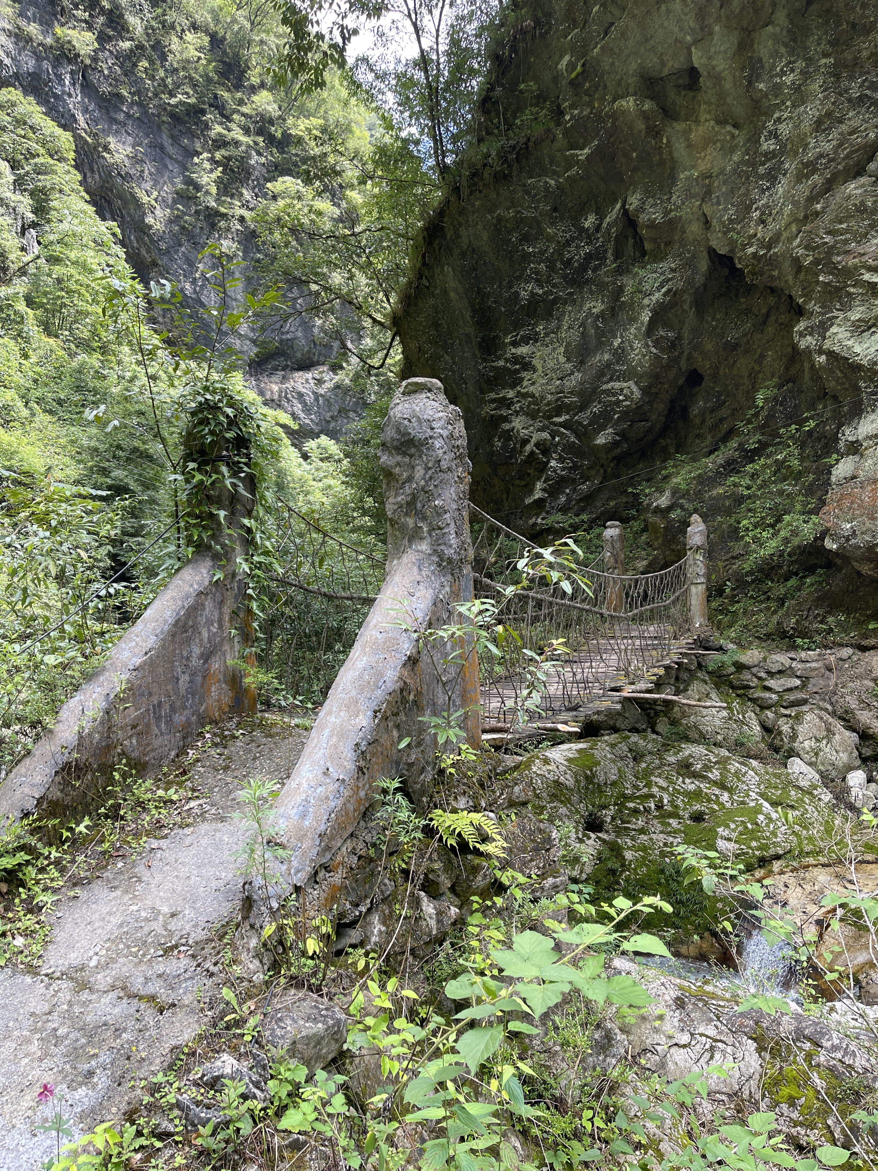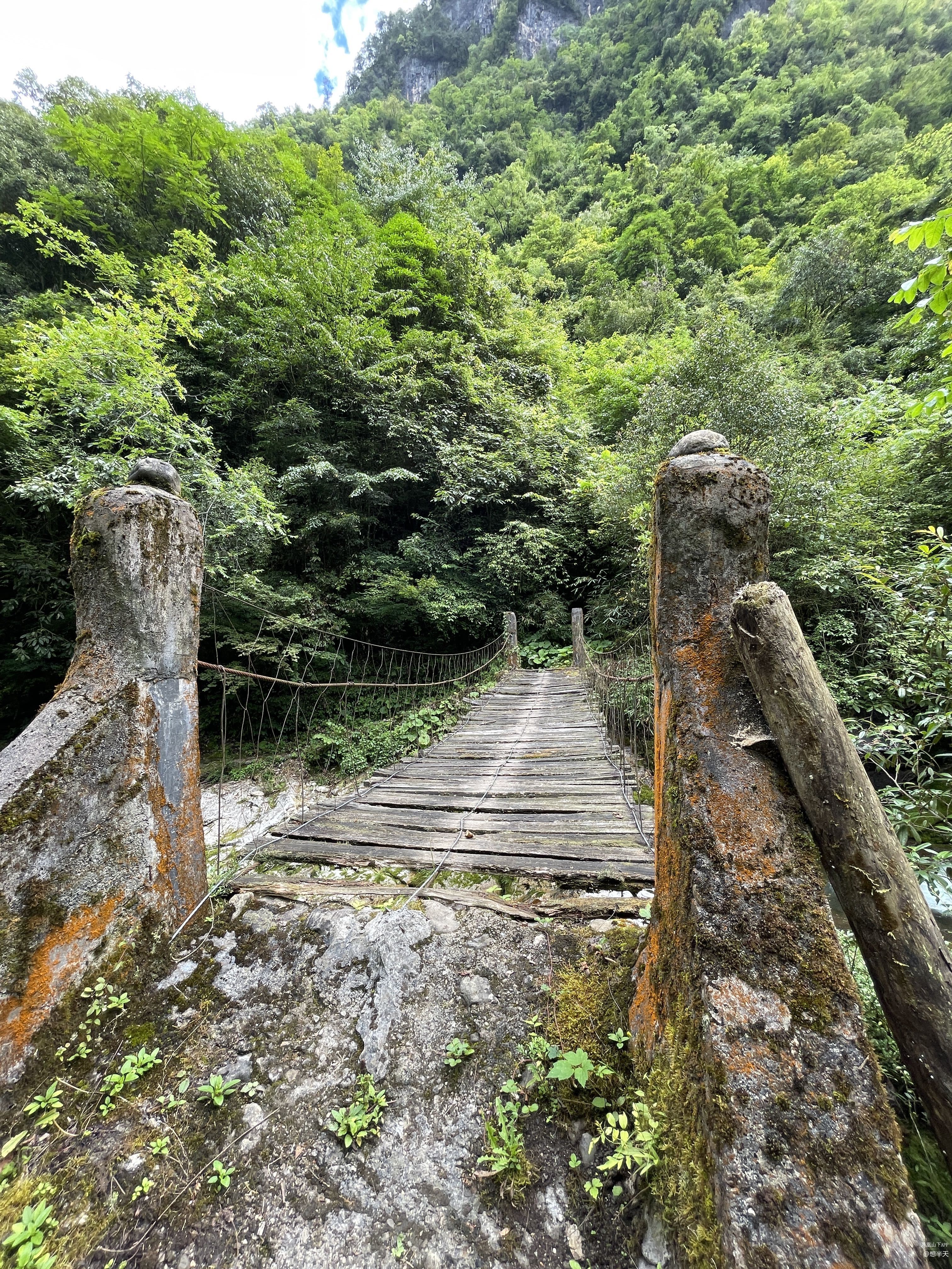 索桥的木板上已经长有野生菌,说明过桥的人极少。