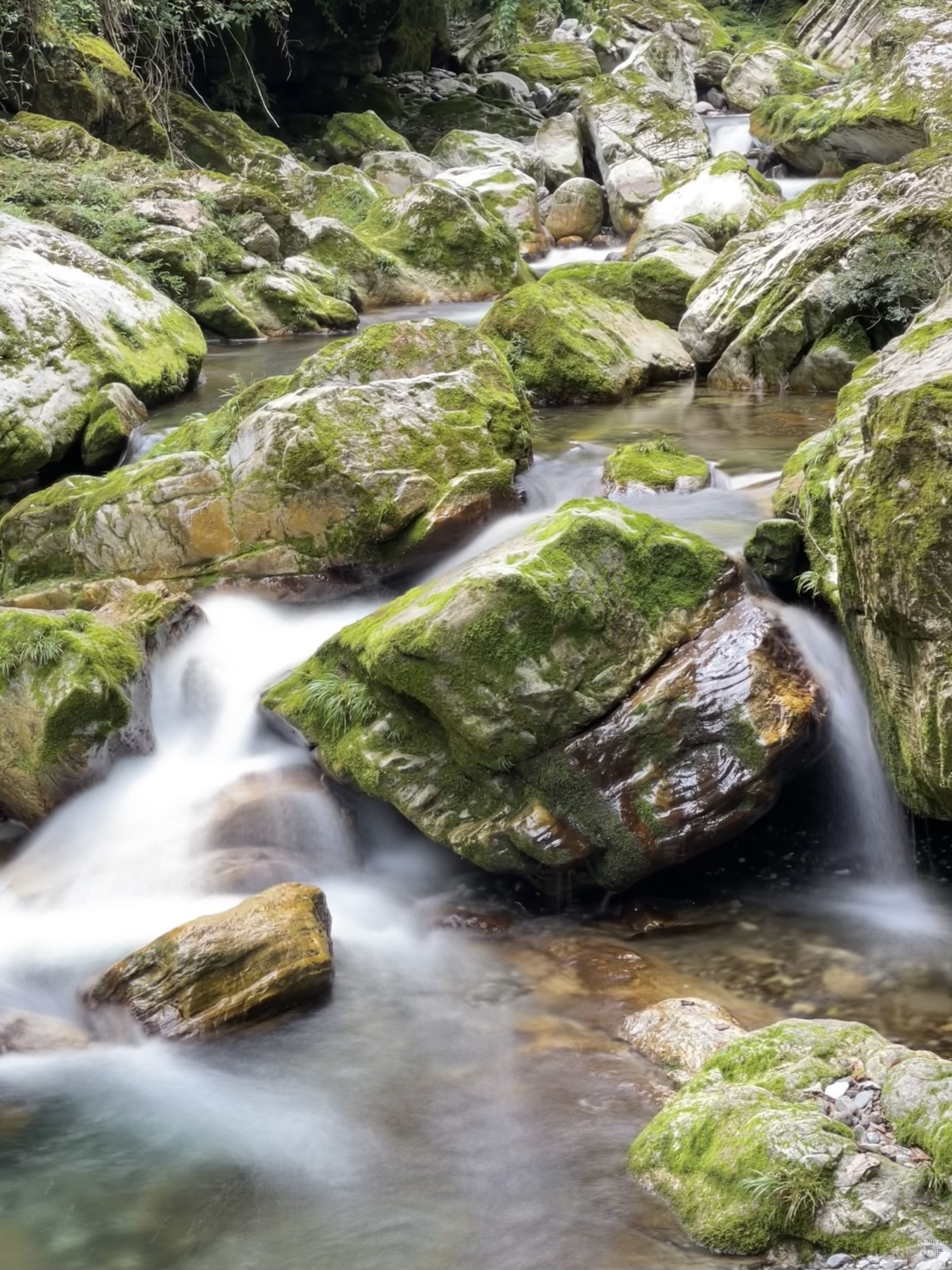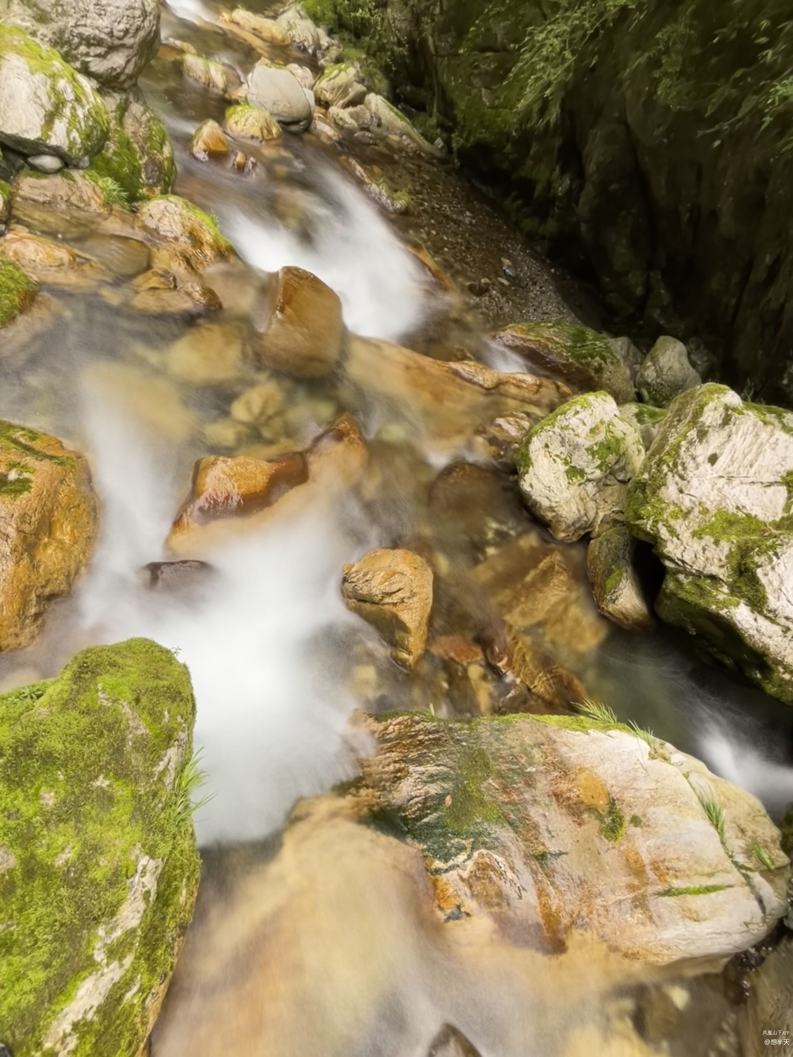 溪流里的水又干净又凉爽,渴了就捧一口喝,甘甜如饴。建议进山就不用带水了,只带点干粮就行。