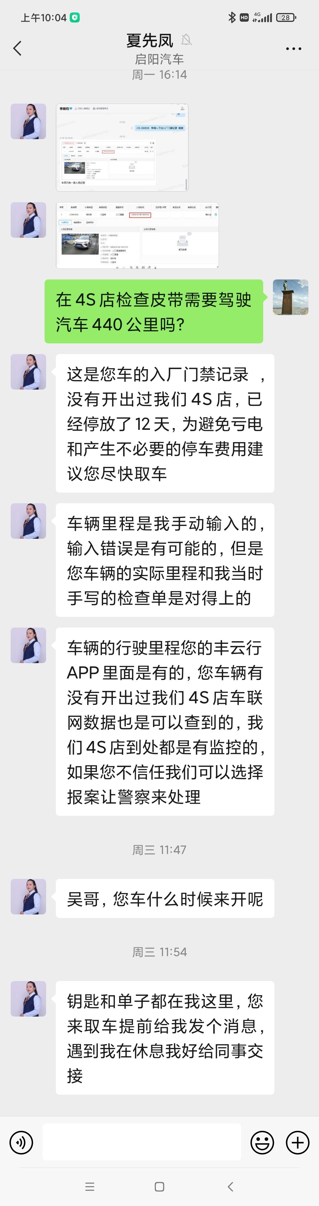在这期间,本着客户第一的原则,我店积极联络客户表示关于零件费253元可以折扣处理,客户不同意,认为车辆既然在保修期内应该无条件更换和维修,我们也多次通过微信向客户解释说明非品质问题无法保修的事实,但客户不认可。现如今,客户通过凤凰山论坛发帖,已对我司及品牌商誉造成不利影响,经咨询律师,我司有权搜集保留证据并依法追究其应承担的法律责任。
