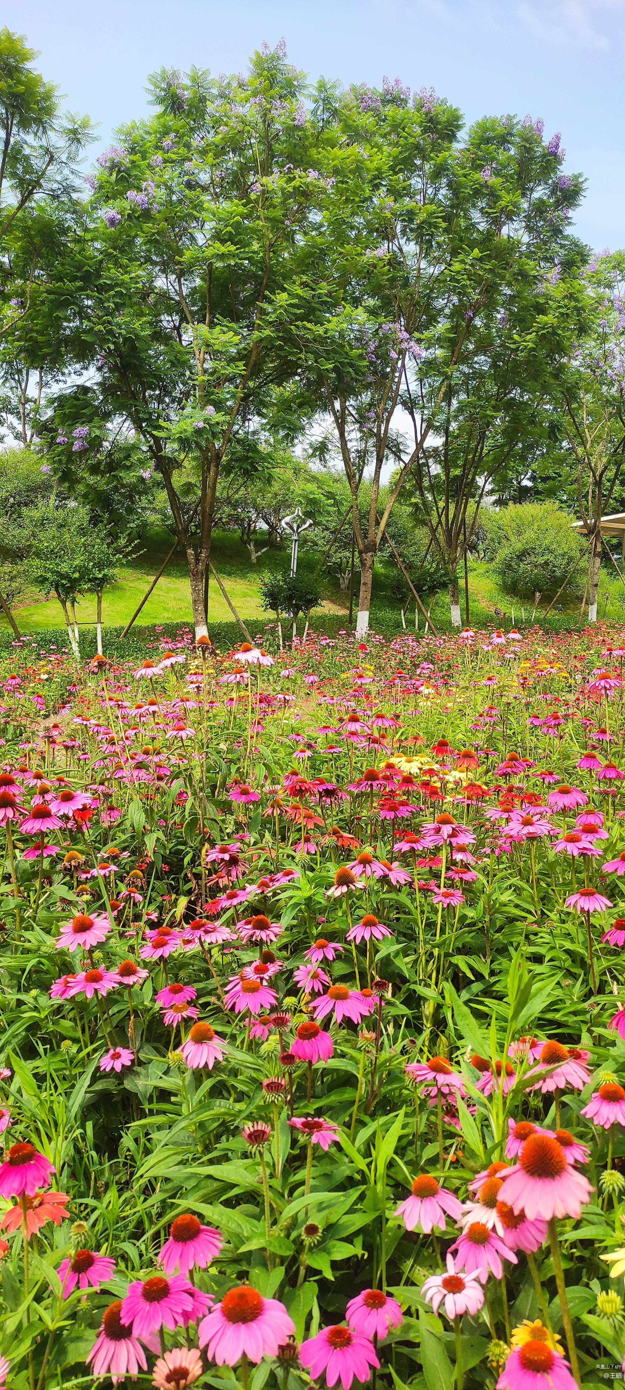 小编有幸在莲花湖湿地公园里观赏到同样来自美州的园艺植物还有紫松果菊和丛樱等!紫松果菊此刻也正在绽放!与波斯菊的纾持不同,紫松果菊花型大,色彩艳丽,犹如墨西哥舞娘!这两种花都主打一个字:热!两个字:热情!充满着生命的激情和美好!