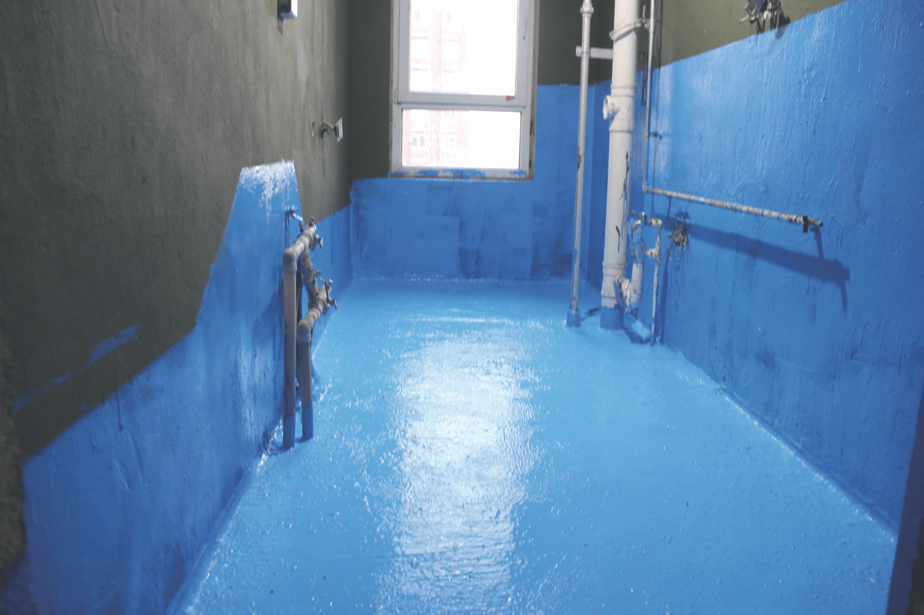6、高品质的防水涂料可在背水面防水获得成功。部分防水涂料可在潮湿基层施工并形成防水层。