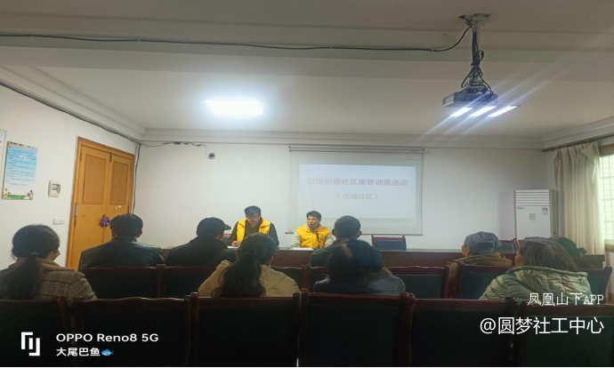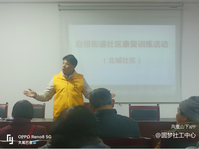 为了减轻精康伙伴家属的压力和负担,帮助家属学会照顾精康伙伴以及处理困难的方法技巧。2024年3月8日,白塔社区康复中心执行机构——大竹县圆梦社会工作服务中心组织社工刘津以及志愿者方曼,罗跃等人前往北城社区开展康复训练活动,参与人数有12个人。活动受到精康伙伴及其家庭和社区领导干部的好评。
