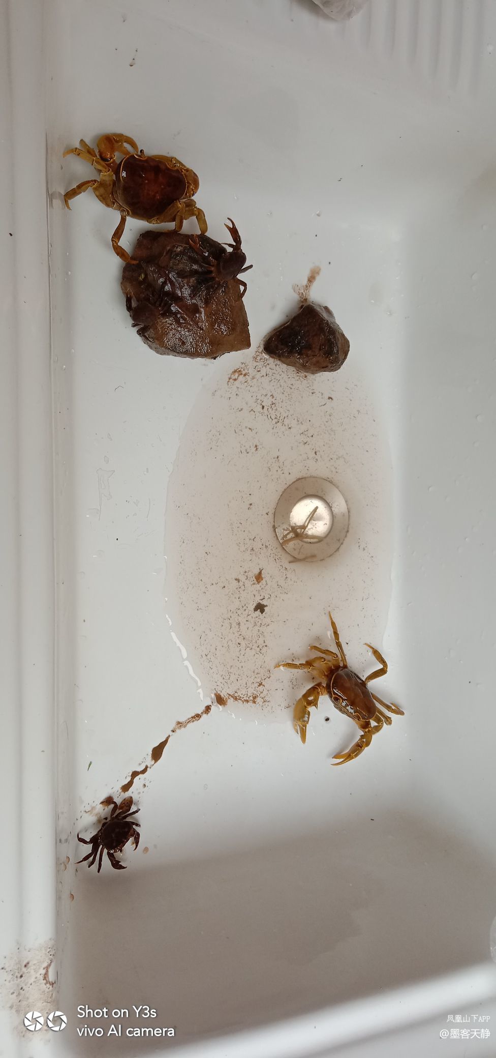 里面的大小石头众多,但搬了两个多小时,才搬到一只小螃蟹。天色已暗,决定回家。