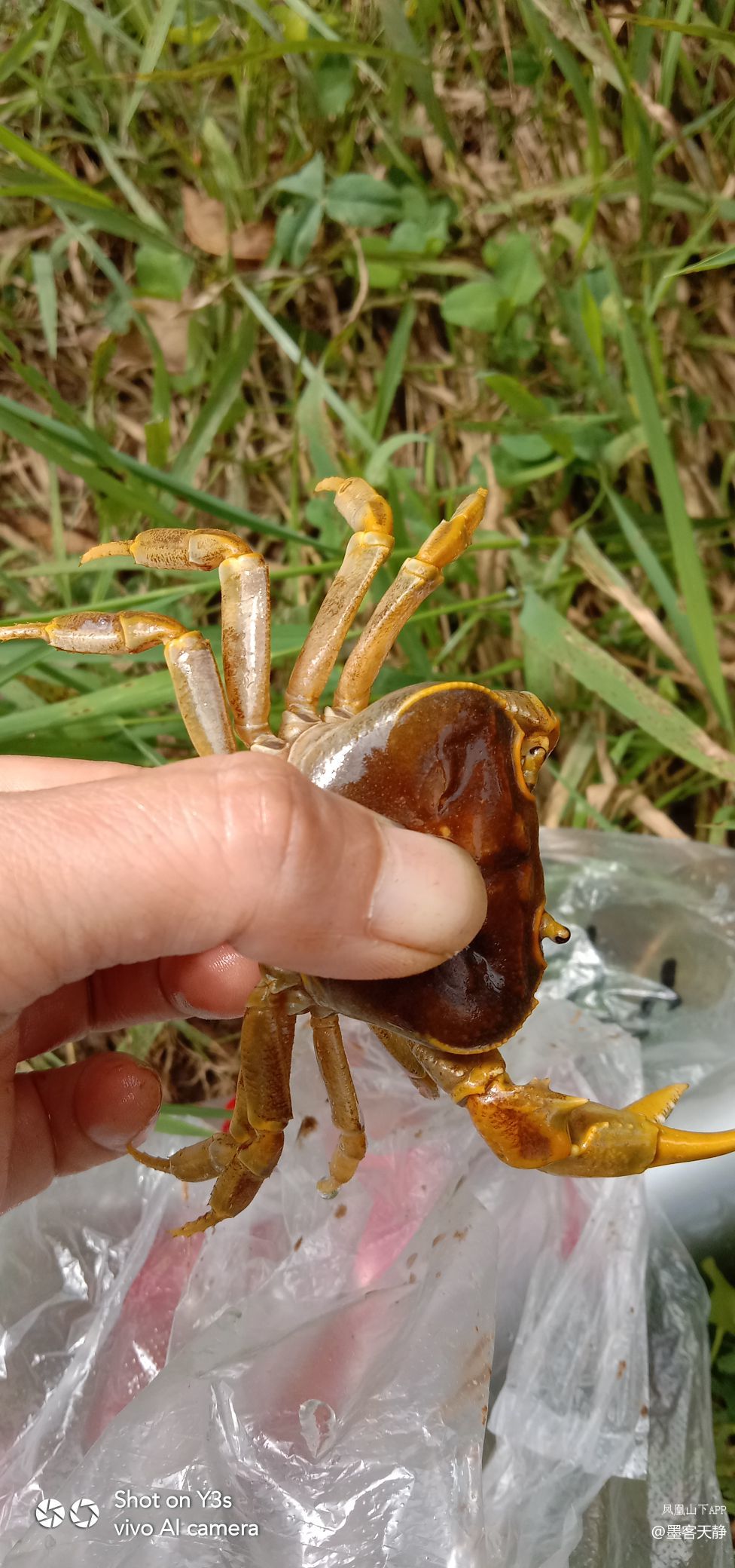 我偏不松手,坚持为它验明正身,向大师傅在微信里推送战果--我手捉螃蟹的照片。