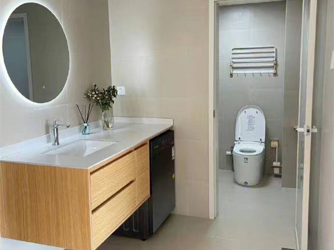 其实洗澡前后脱衣服、穿衣服,需要腾脚起来的,若地面太滑也是容易摔跤的,尤其是老人小孩在这个过程很容易滑倒,若是条件允许,建议在马桶、淋浴房门口、更衣区装上扶手,提供更贴心安全的卫浴环境。