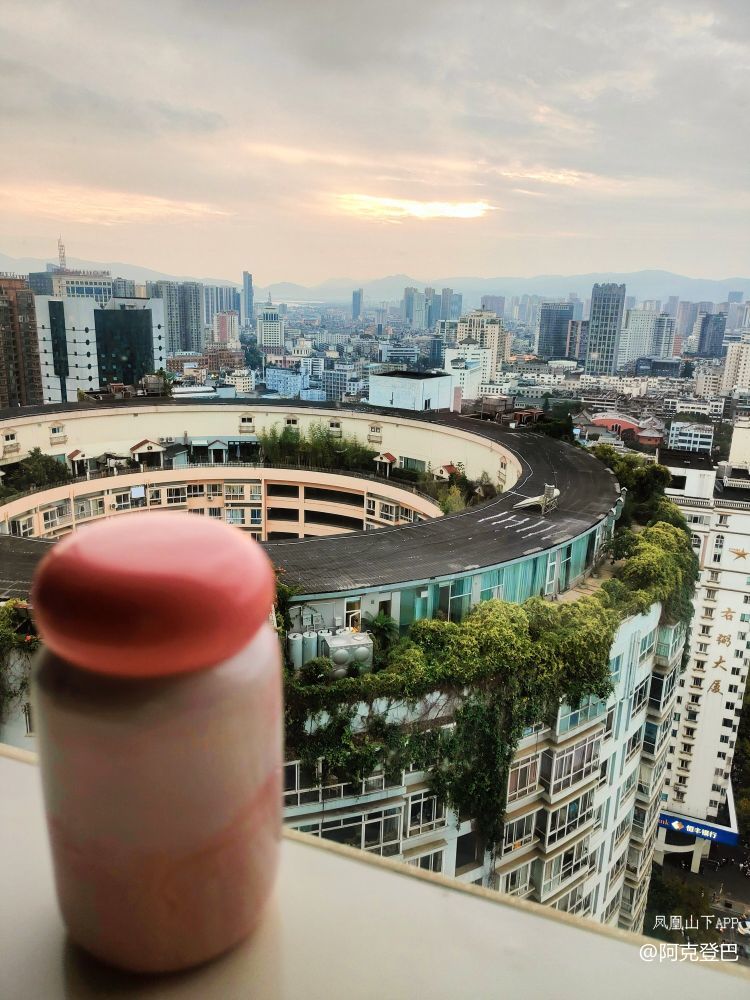 深秋的十一月并不萧瑟,微微凉的感觉不冷不热,一条薄单裤,一件薄夹克,便可深入彩云之南,闲逛南诏国了。由于本次行程有2位古稀老人,所以不敢恋站,仅拟昆明、西双版纳2站则罢。在网上预订了昆明一间民宿,楼上楼下各1张大床,从视频上看,房间还蛮啵错的,价格比住酒店还便宜。选址时,特意订在昆明“滚筒洗衣机大楼”傲城大厦傍边,希望能拍到一张“天空之镜"的片片。从订住的阳光A版20楼,临窗便可打卡那幢网红筒子楼的全貌,甚是期待呀。