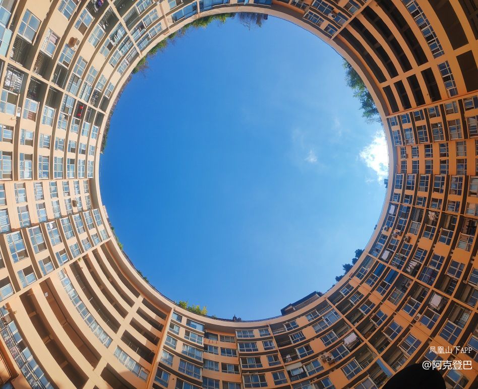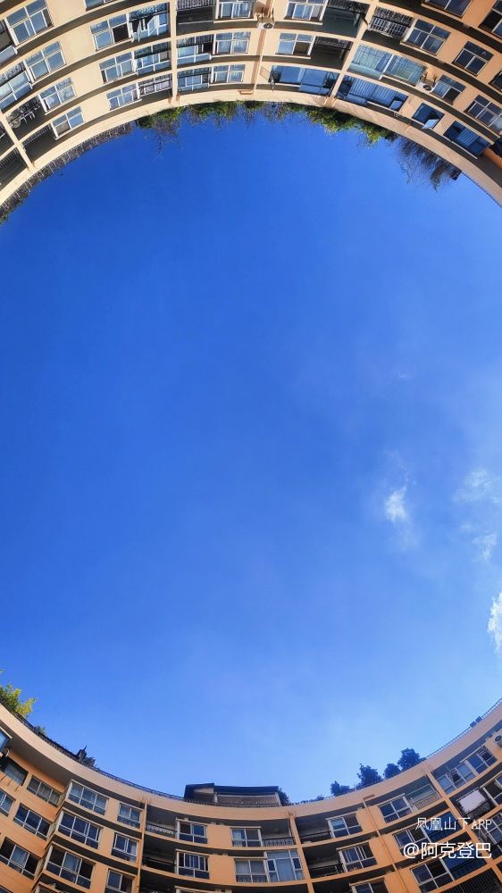 在筒子楼的上空,俺每天苦苦等待的就是这抹蓝啊。为怕仙儿哥反悔,俺紧急抓起手机急下20楼,又冲进隔壁傲城大厦,急上6楼中心平台,抖开手机镜头,对着这根大筒子的天窗哒哒哒地扫将出去,瞬时,一摞一摞的千层酥拱卫着一枚巨大的蓝宝石在俺90度的仰角上冰润欲滴。传说中的天空之镜,就在俺即将告别昆明之时,忽现惊喜!那赶角,就像期待已久的干柴,突遇烈火的抚慰,浑身舒坦,这终于实现了俺捕捉天空之镜的梦想,呵呵,昆明没白来,仙儿哥没白给!