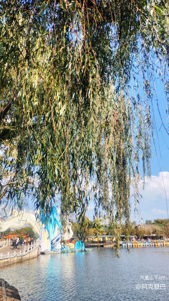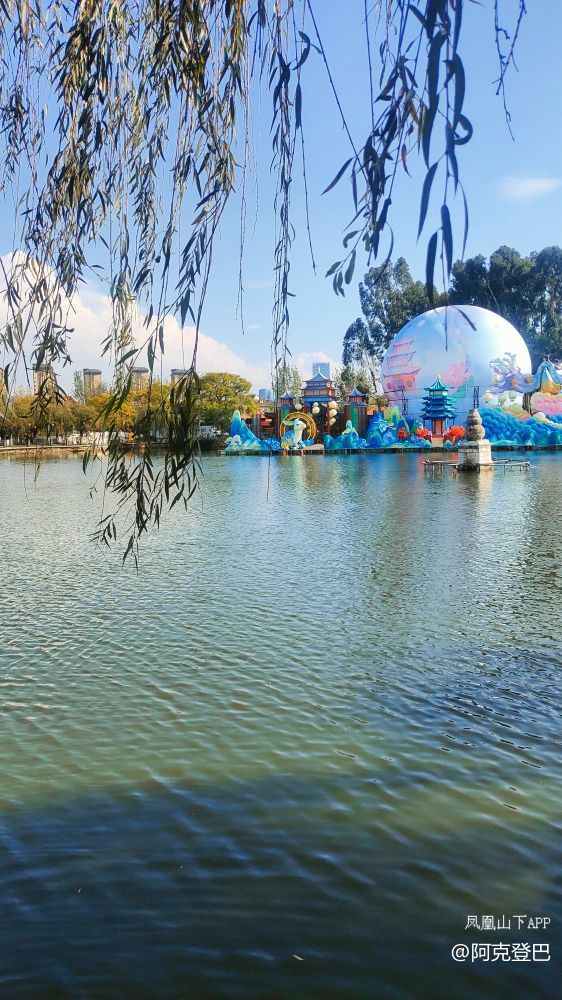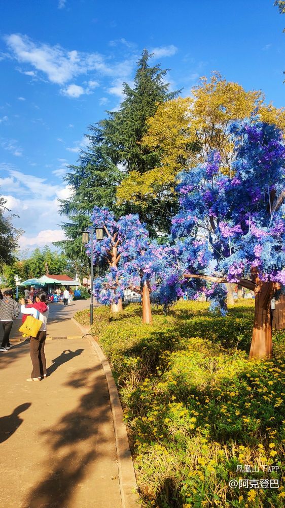 介么澄澈的秋阳,怎能放过大观公园的湖光山色呢?一声滴滴俺们转身就融入了《大观秋阳图》。湖岸柳丝轻飏,一眼便知的假蓝花楹在这个季节的阳光中开放的样子,居然也狠漂亮。微风簇拥着阳光将滇池的绿波映得鳞光闪闪,尽管这浓浓的绿早已绿得过份,绿得让环境工程难以管控,但浩瀚的昆明湖又怎能割舍这五百里的情怀呢?