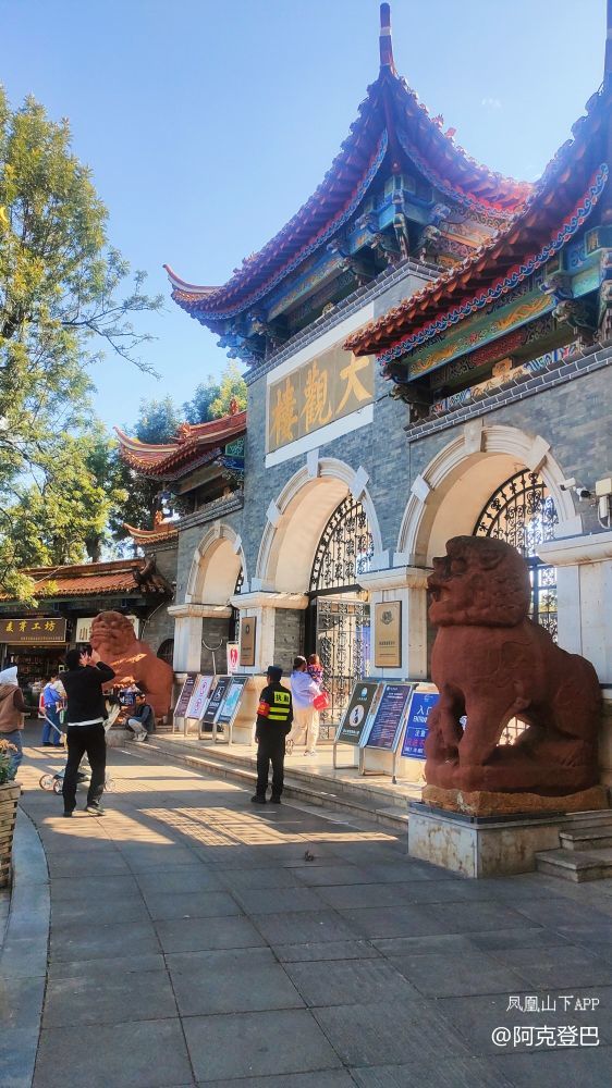 “五百里滇池奔来眼底,披襟岸帻,喜茫茫空阔无边。”180字的长联,俺只能默住这一句,想读下句,却寻不到大观楼的踪影。一问,竟然就在眼前。大观楼被包裹得严严实实正在维修,原来俺并没记错大概方位呀。唉,又是一场遗憾!可以说,滇池是昆明的春城之肾,而大观楼楹联则是昆明的精神之魂。精神之魂,意会亦可,又何须参读。俺乘兴而来,兴尽而返,又何须遗憾呐!