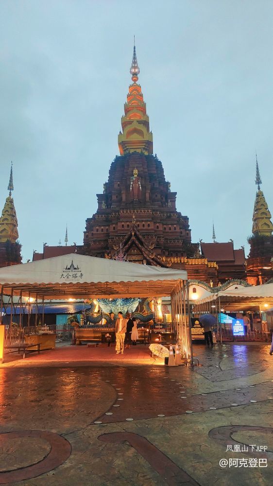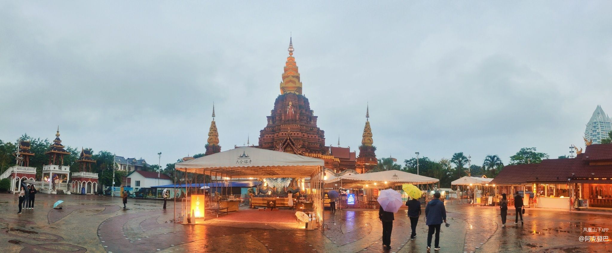 而大金塔在夜市的一端静静矗立,它散发着神圣而庄严的气息。金色的塔身被灯光映照得熠熠生辉,高耸的塔尖直指苍穹,仿佛在诉说着古老的故事。独特的建筑风格融合了傣族文化的精髓,每一处细节都彰显着信仰与艺术的完美结合。远看,大金塔宛如夜市的守护者,在热闹与喧嚣中,为这片土地带来了一种祥和的氛围。近观,又能感受到一种心灵上的宁静,那是与繁华夜市截然不同的体验,却又与夜市共同构成了西双版纳独一无二的魅力。在大金塔的注视下,星光夜市愈发迷人,而两者的搭配,更是西双版纳夜晚最动人的风景。
