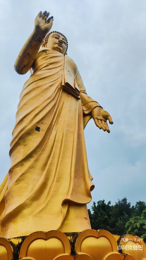 吉祥大佛是我所见过的最大的一尊铜佛,俺几乎是爬在地上才用仰角拍全了大佛金身。49米的高度,仿若一条连接尘世与净土的时空通道,让仰望者的心灵瞬间受到震撼。大佛面容庄严肃穆,双眸低垂,似在俯瞰着世间的悲欢离合,又似在慈悲地注视着每一个前来朝拜的灵魂。微微上扬的嘴角,带着超越尘世苦难的宁静与祥和,仿佛在向这片土地传递着智慧的低语。右手向上,驱散世间的魔障与邪恶,左手向下,抚慰大地众生,导引我们用禅意放下心中的烦恼与执念。俺以为,禅意就好似洗涤心灵的清泉,存于人人心中,像凯庄大佛塔存于金山一样,只须拿掉多余部分,清泉自会汩汩涌出。