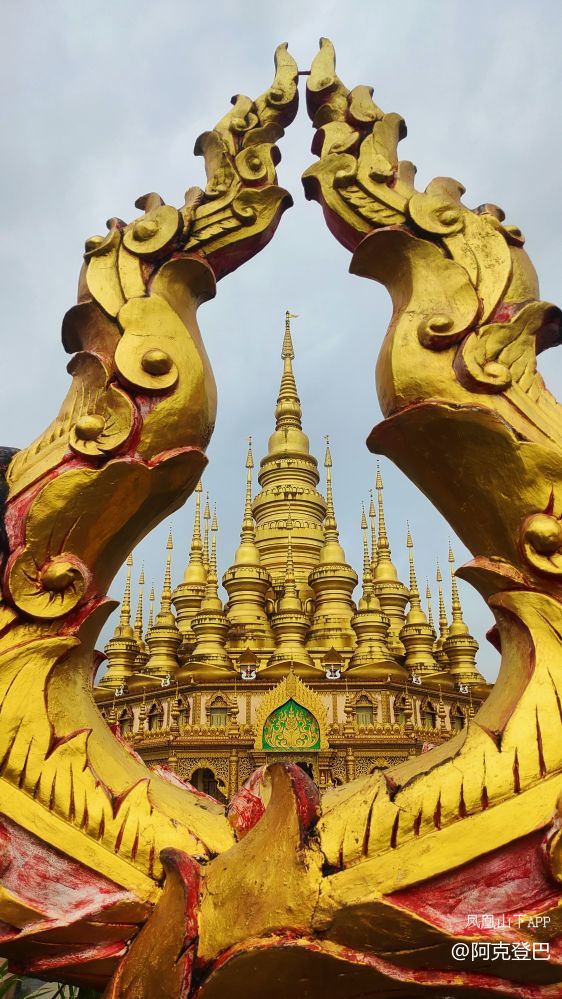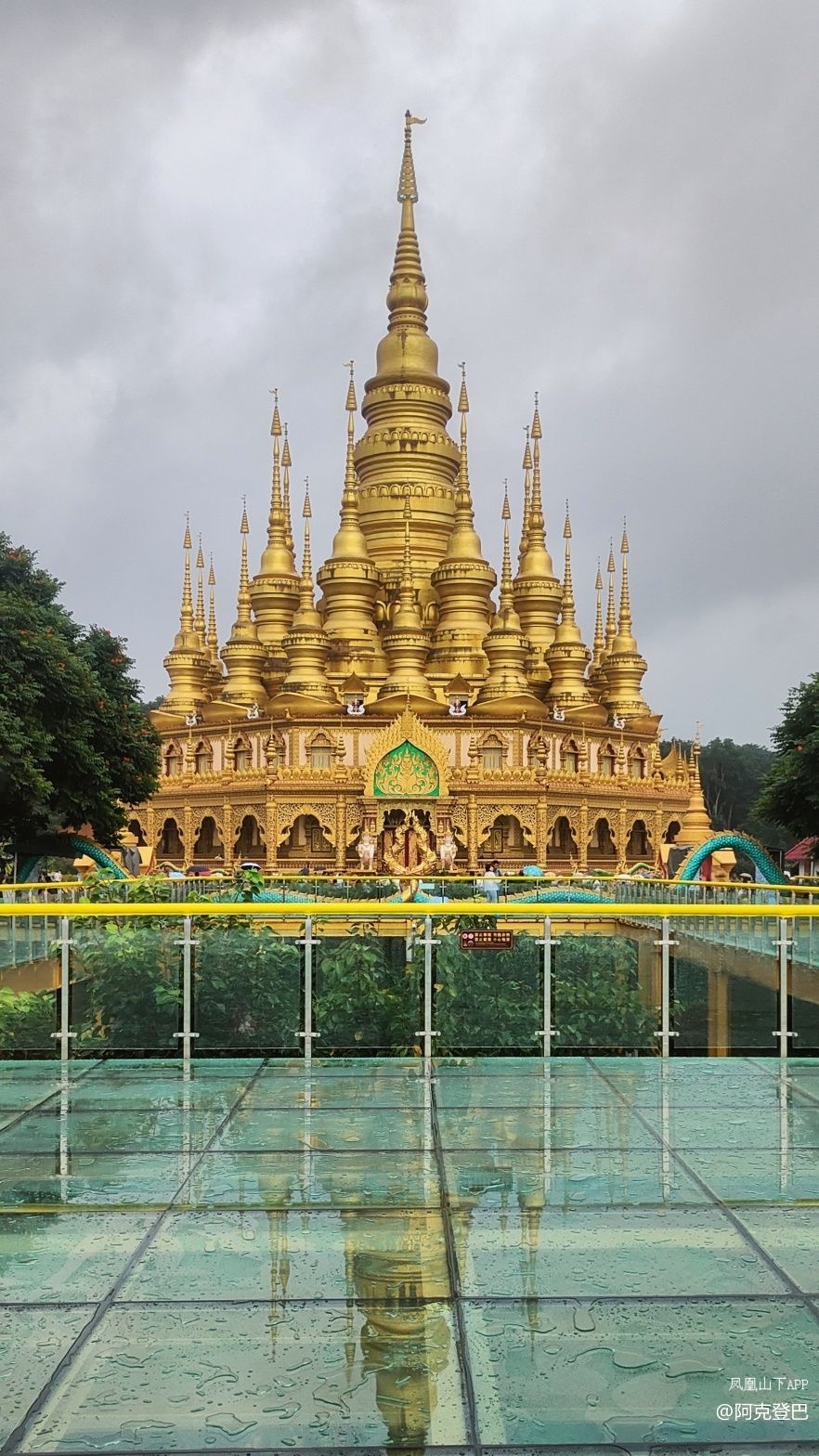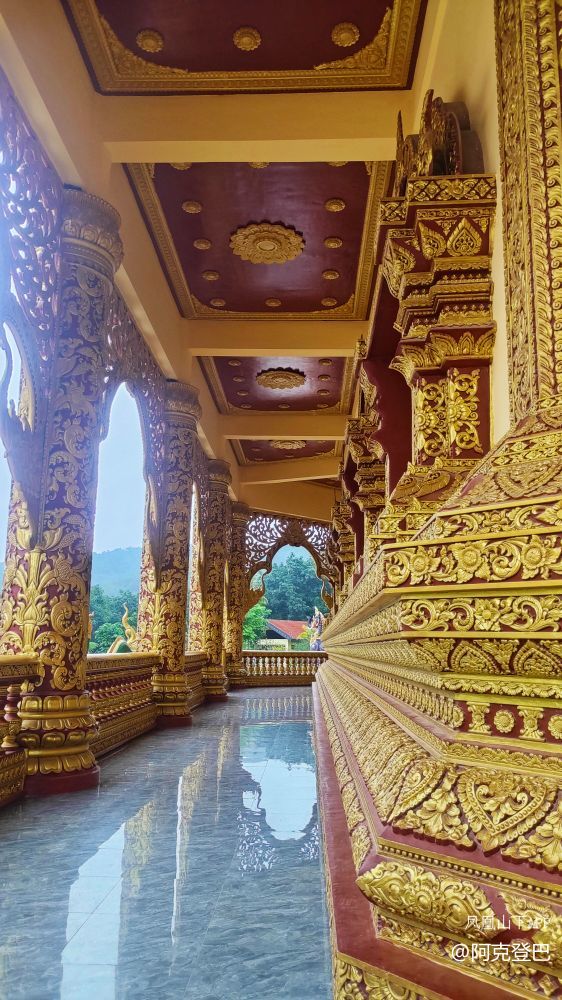 其实也曾经见过好多寺院的金殿,但真正适配金碧辉煌一词的只有凯庄大佛塔。那体量之大,气势之宏,熠熠生辉的金光,就像一班技艺精湛的佛家工匠将一座金山的多余部份拿掉之后,显现出来的一座巨大金塔。在塔中回廊漫步,仿佛被一种神秘的力量牵向梦幻之境,纯粹而虔诚。塔前的莲花池,倒映着佛塔庄严的身影,与天空、山峦构成了一幅绝美而空灵的画卷,让每一个来到此处的灵魂都能得到洗礼与慰藉。
