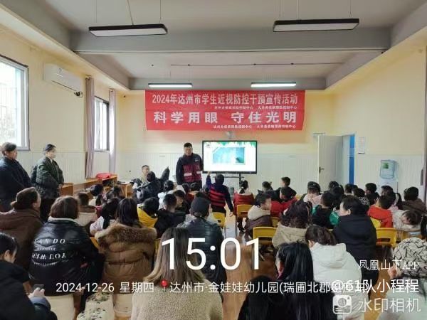 近日,市疾控中心为深入贯彻习近平总书记关于儿童青少年近视防控系列重要指示批示精神,切实抓牢全市幼儿园和小学近视防控关键阶段防控工作,联合通川区、大竹县疾控中心分别在天玺幼儿园、金娃娃幼儿园开展“科学用眼 守住光明”为主题近视防控宣传活动。