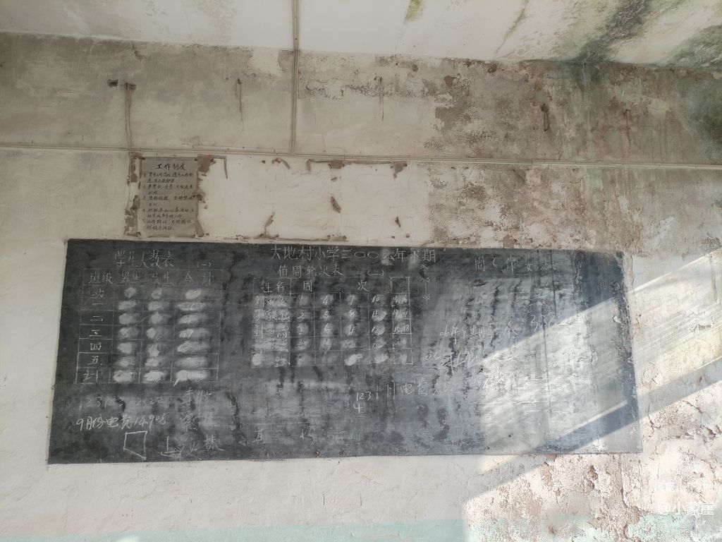 根据黑板上的值班表,看得出来学校是2006年后就停止了教学活动,其实也已经18年了,后来租给种平菇的人,用了几年。其实很可惜,学校这个位置,是历来的学校,应该是建国后就是学校,最早的房子是石头块块砌的墙,也有部分墙是青砖砌的,原本在操场旁边还有一排木房子教室,有两楼,在九十年代拆了,我在老教室读了半学期幼儿园,后来就开始修新学校,暂时上课都是在我们大队电工家的新房子里面。