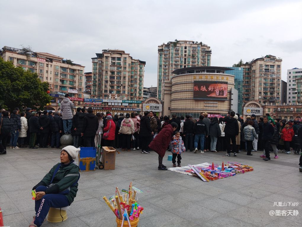 初七下午,我去中心广场,那里热闹,到处摆摊设点,人流汹涌,均是群众自娱自乐。