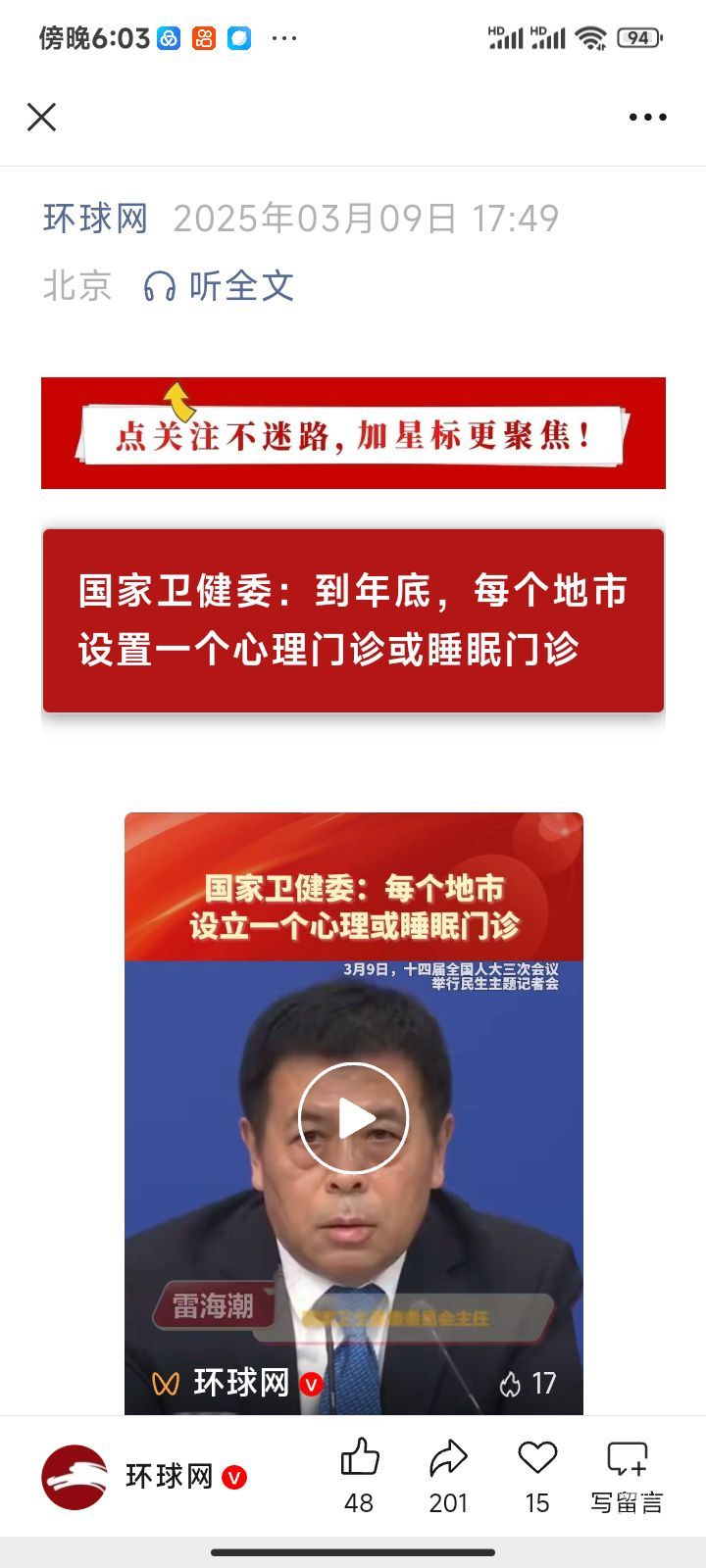 国家卫健委:每个地市设立一个心理或睡眠门诊