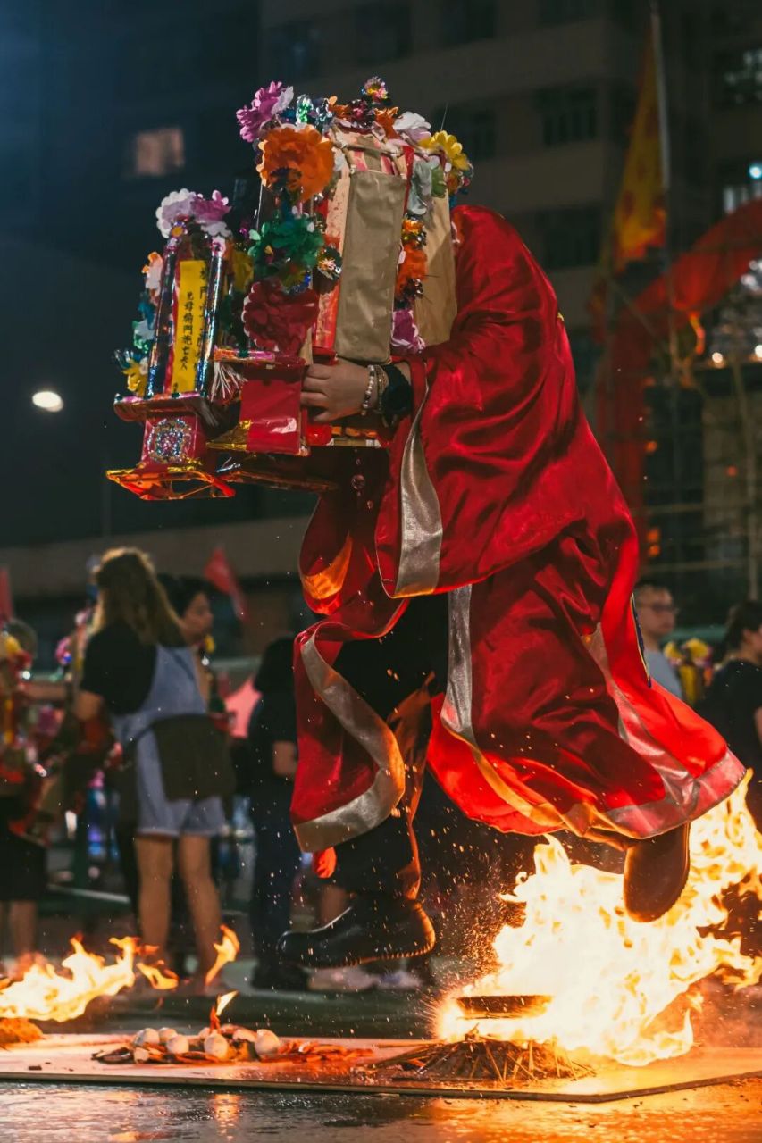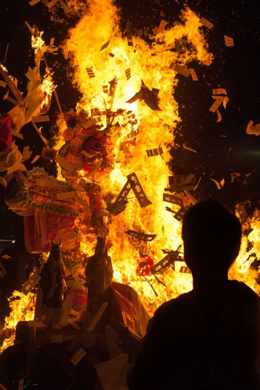 香港中环盂兰胜会最后火化所有祭品。