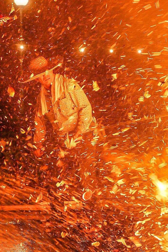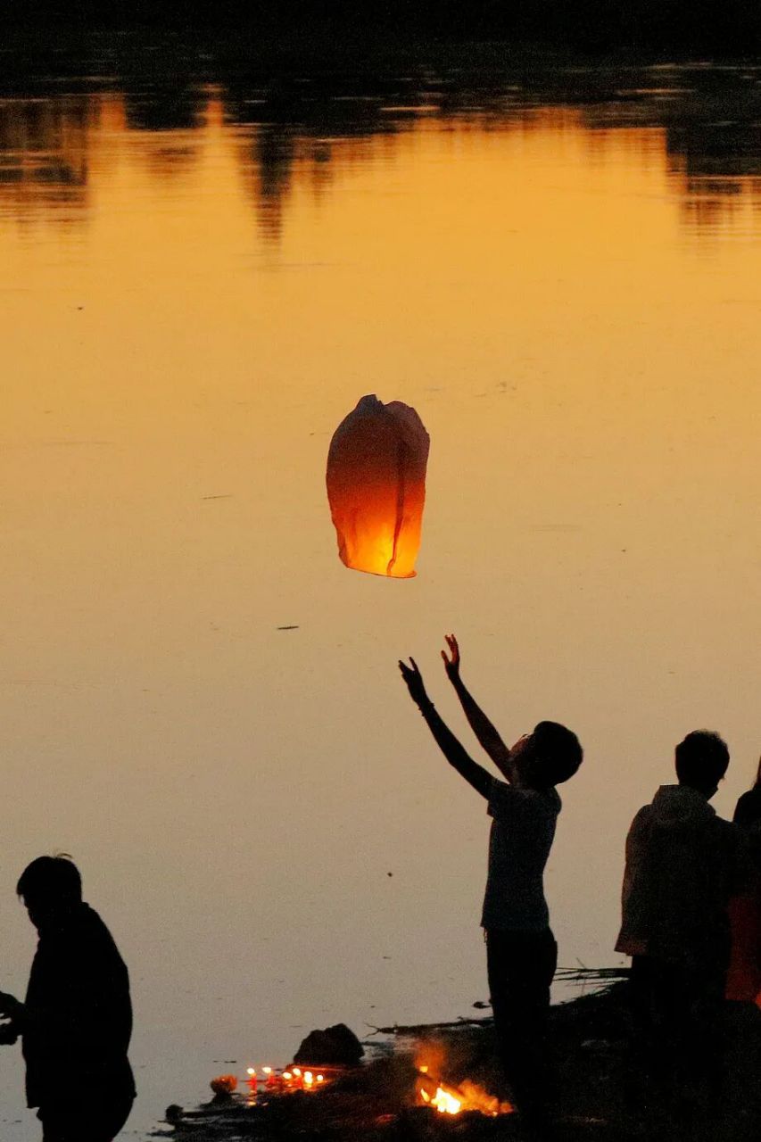 龙头河畔,风雨桥下,一簇簇火焰几乎将整条河都映成了橙色,纸钱纷飞,青烟缭绕,每个人的身影都只剩下轮廓,好像天地、阴阳在此时此刻已经混成了一片,在别样的“万家灯火”的照耀下,人们和已逝的祖先亲人正无限接近。