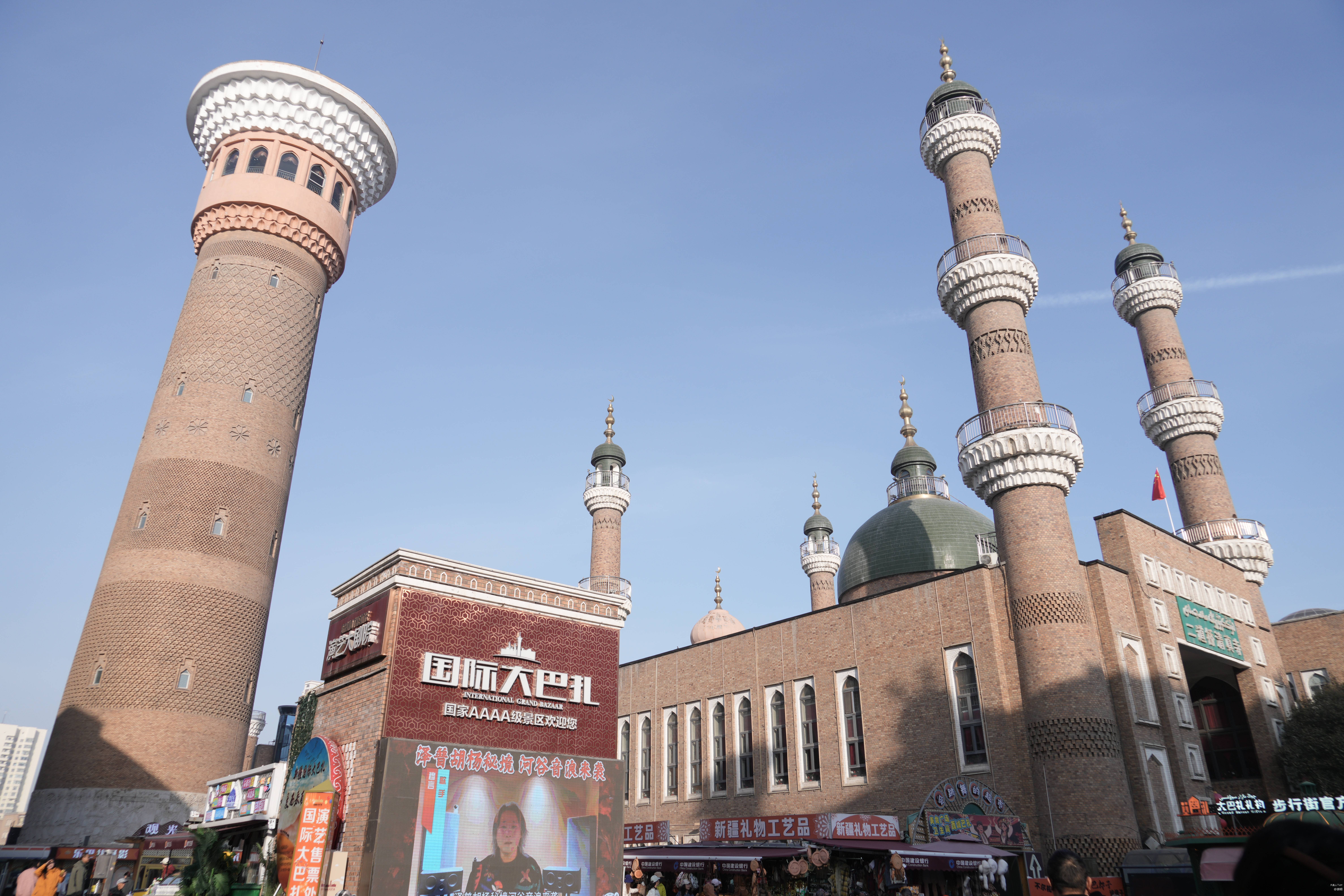 “大巴扎”是维吾尔语“集市、农贸市场”的意思。其中,乌鲁木齐的新疆国际大巴扎是世界上规模最大的此类集市,集历史文化、建筑、民族商贸、娱乐、餐饮于一体,被誉为“新疆之窗”“中亚之窗”