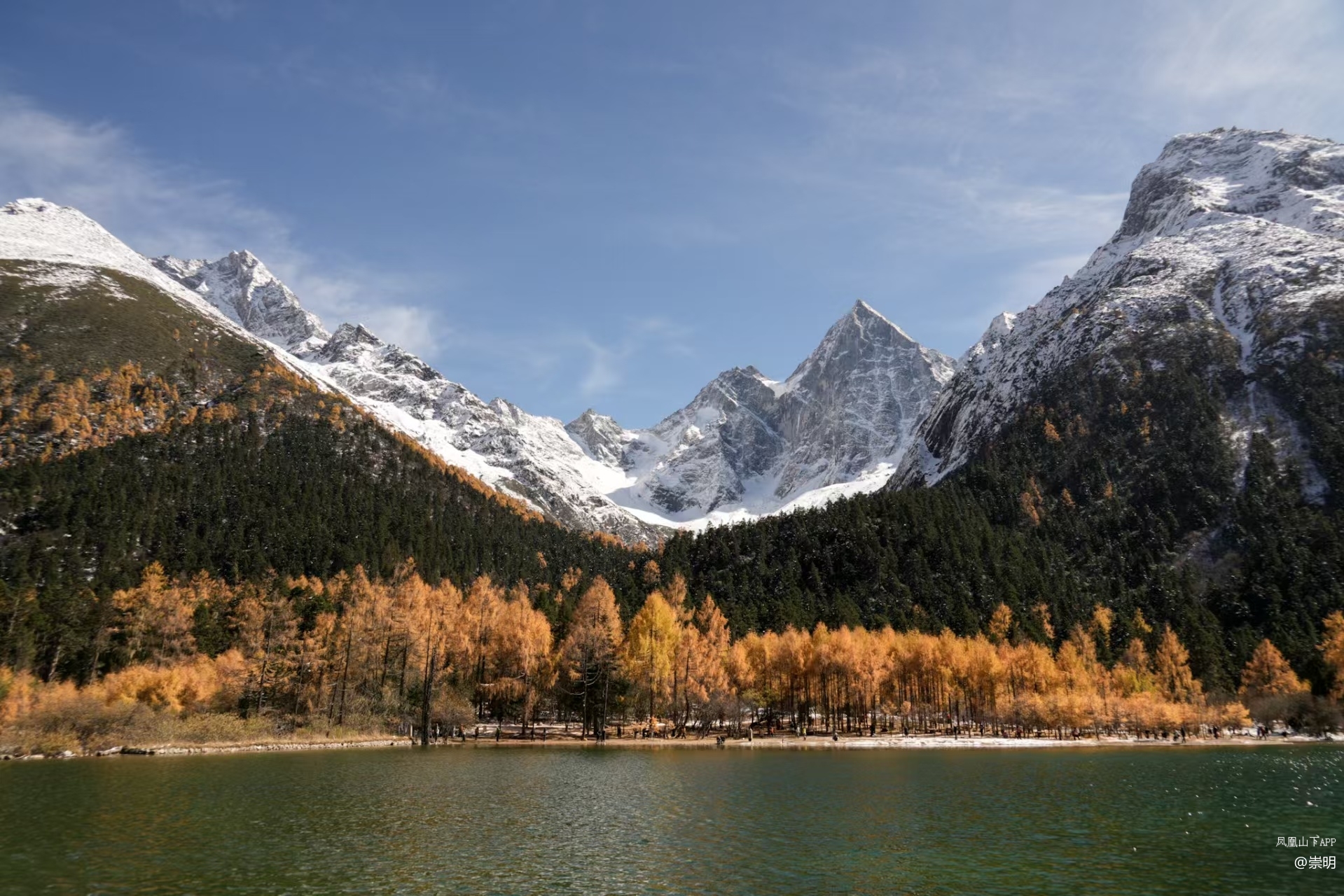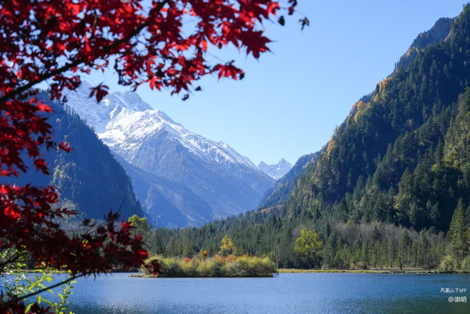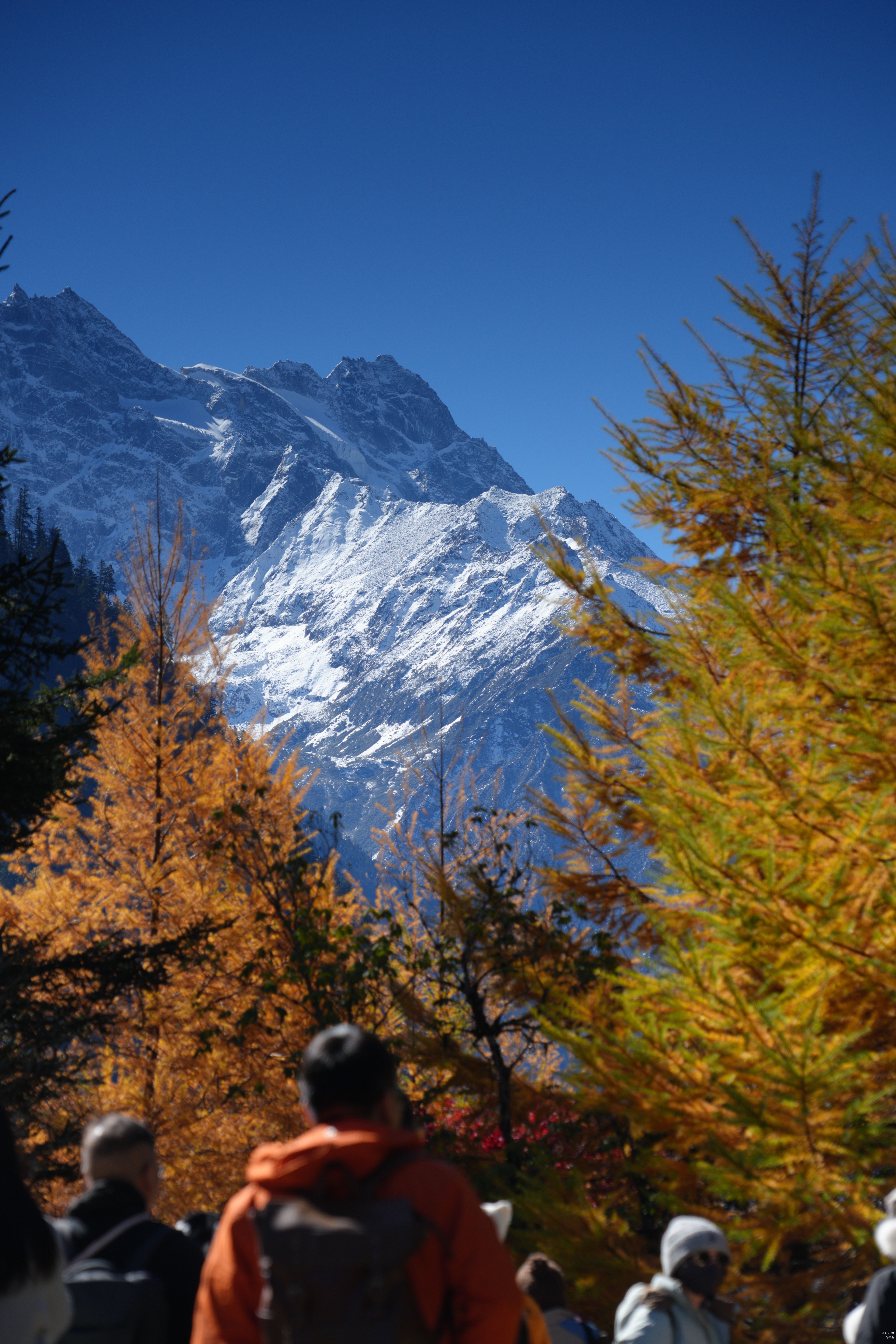 雪山彩林是她标志性的秋日场景,无论你站在哪个角度,几乎都能看到彩林作为前景,雪山作为背景的壮观景象。