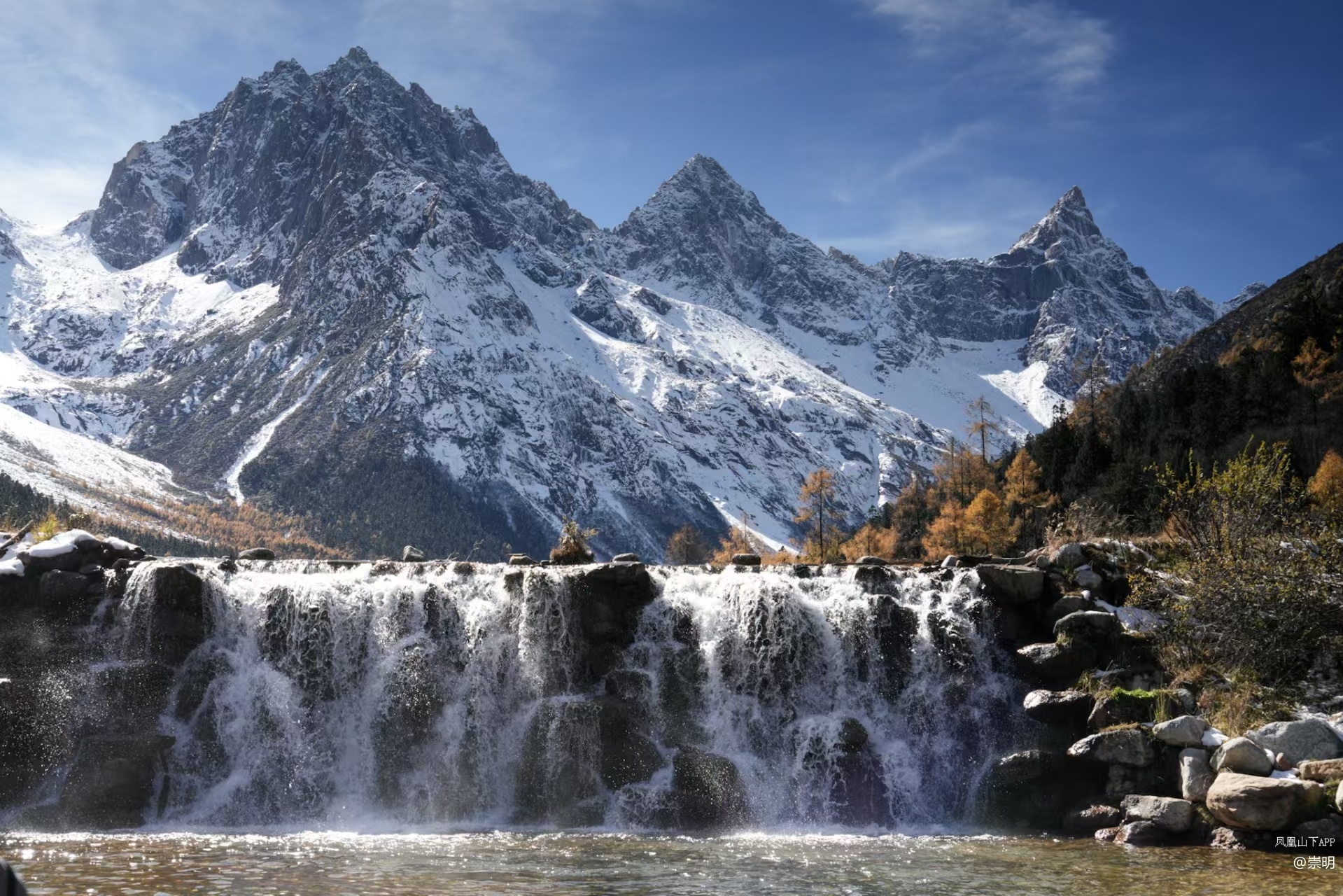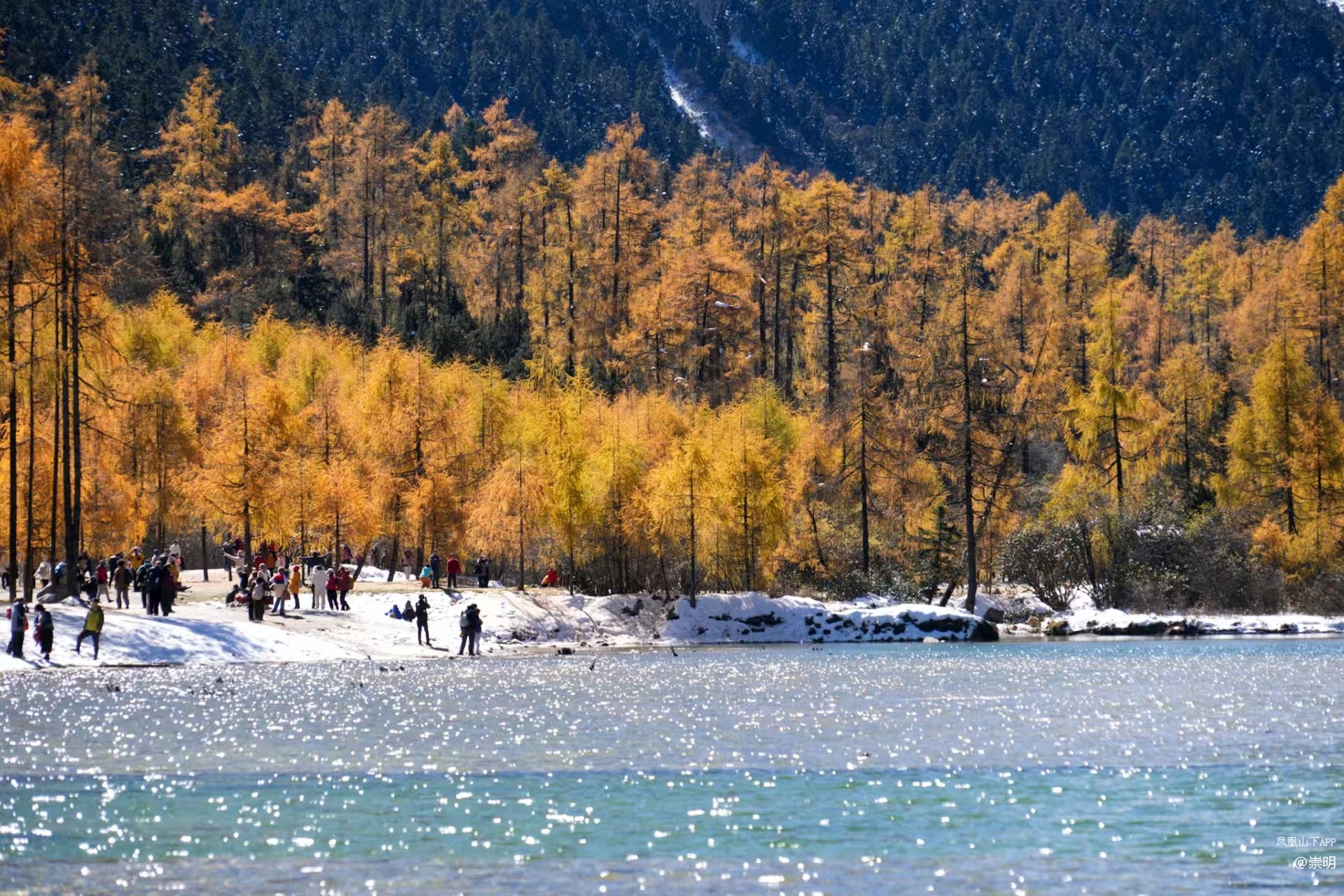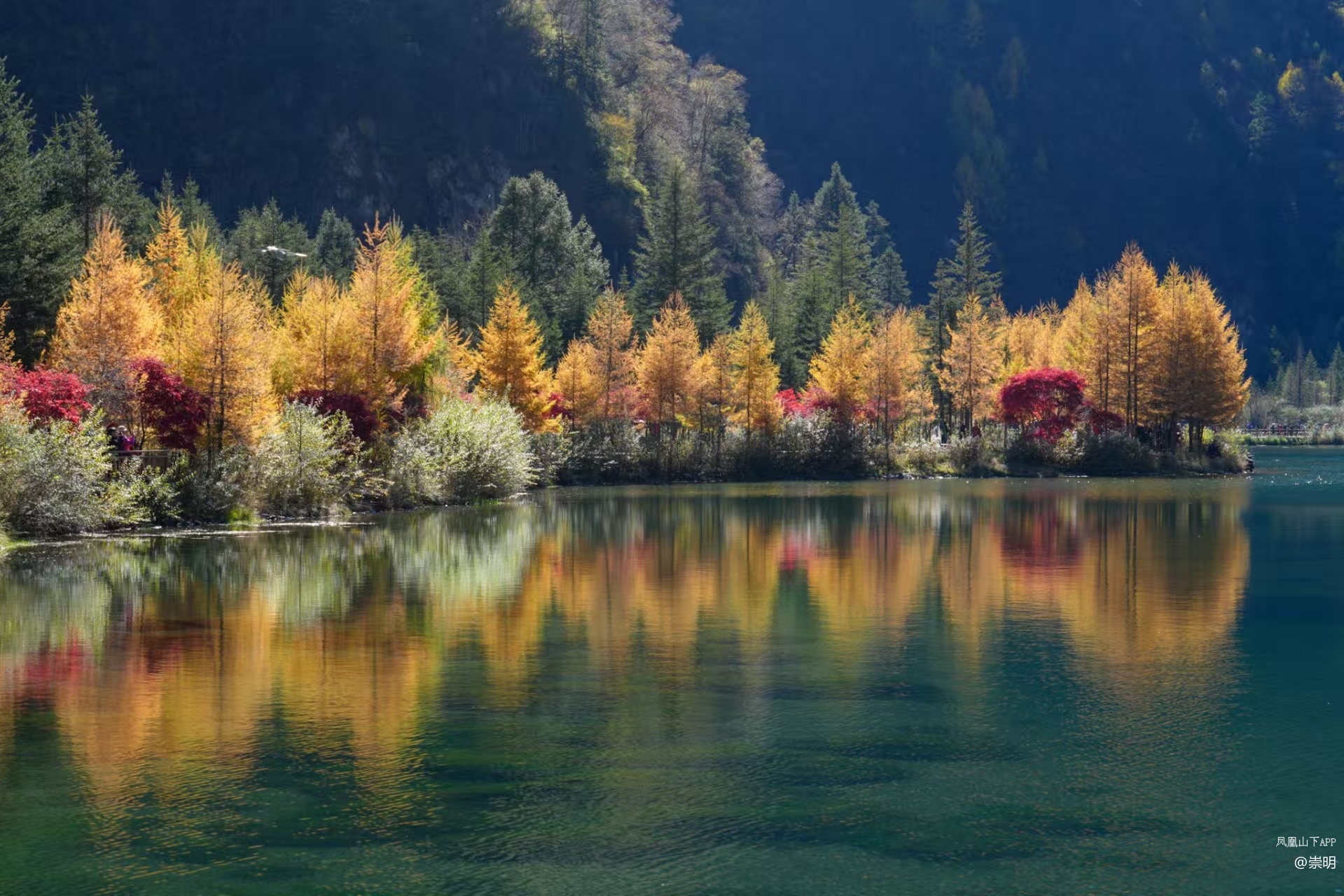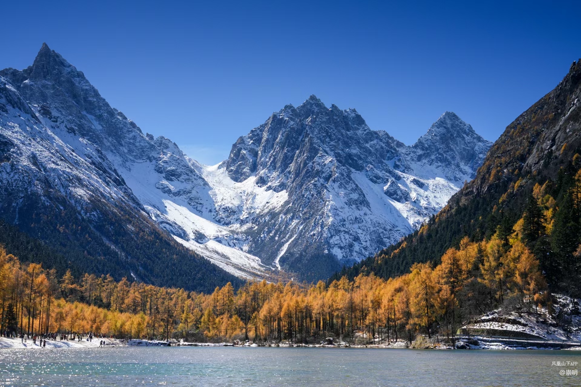 雪山彩林是她标志性的秋日场景,无论你站在哪个角度,几乎都能看到彩林作为前景,雪山作为背景的壮观景象。