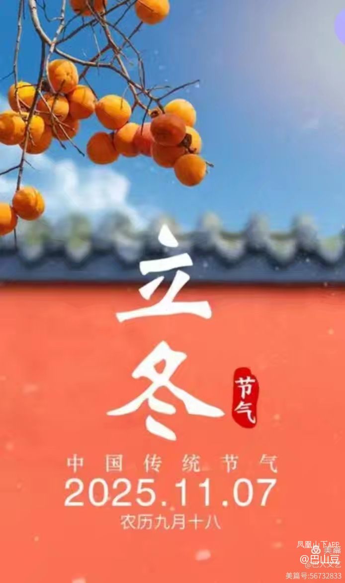 故乡的立冬,没有都市的喧嚣,只有霜白与烟火交织的静好。那些藏在食物里的牵挂,那些围炉夜话的温情,是岁月最绵长的馈赠。这个冬天,愿故乡安暖,愿牵挂如常,愿每一份思念,都能被寒风捎向远方。【作者/巴山豆】