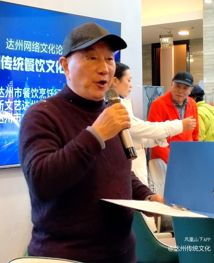 王元达名誉会长宣讲了达州传统餐饮发展简况,逐一介绍了新一代名厨国家高级烹调技师谢永海、国家高级面点师王绍坤、国家高级烹调技师周家福以及川菜功勋匠人陈良玉、杨秋野、廖永浩、任启富、钟发彬、唐光友等。