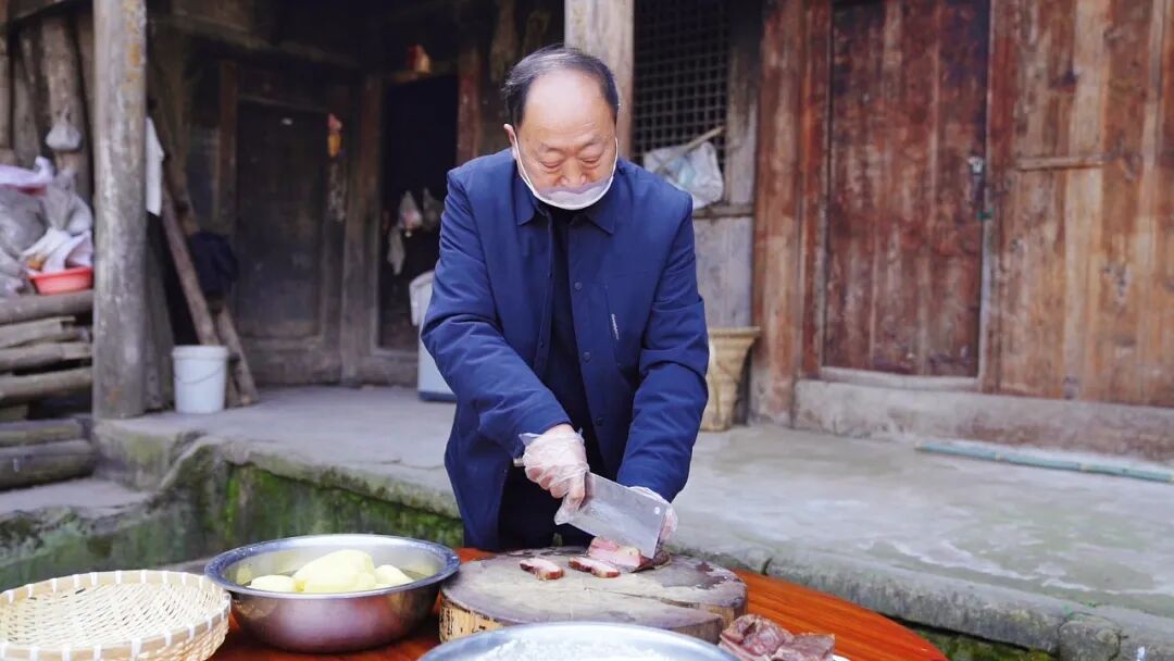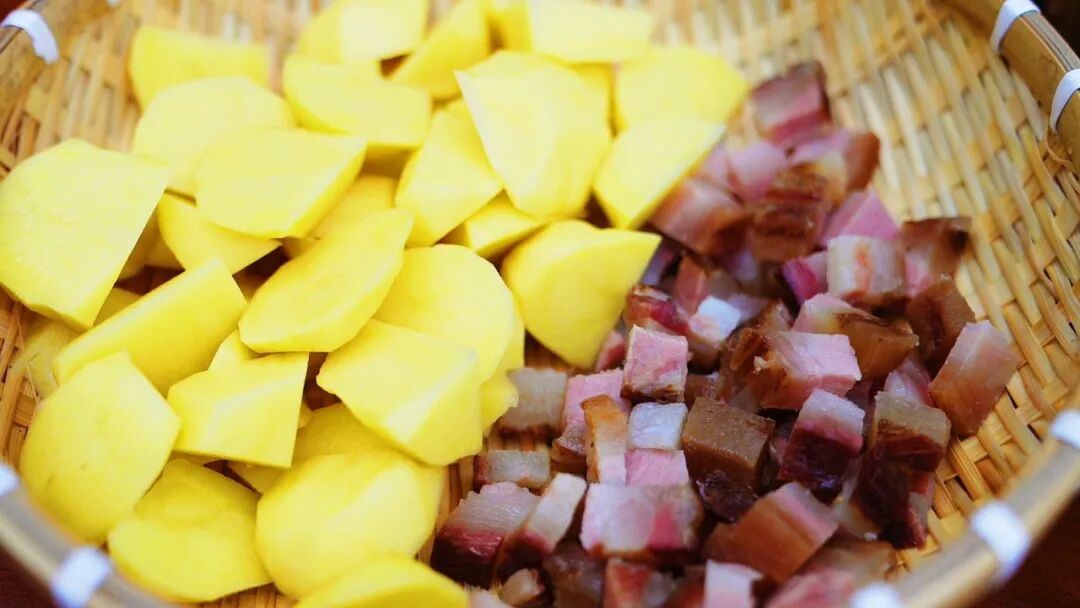 在石窝镇番坝村,村民余天翼正演绎着万源罐儿饭的乡土智慧。他先将硒米用清水略煮至半熟,捞出沥干备用。接着热锅翻炒富硒土豆块与本地老腊肉,待其入味后,加入半熟的硒米一同拌匀,随后转入罐中以小火慢焖。约半小时后,轻转罐、不揭其盖,以余温继续焖制,直至罐底自然形成一层金黄酥脆的锅巴。这层焦香凝结山野风味的精华,也诠释了万源人“慢工出细活”的饮食智慧。