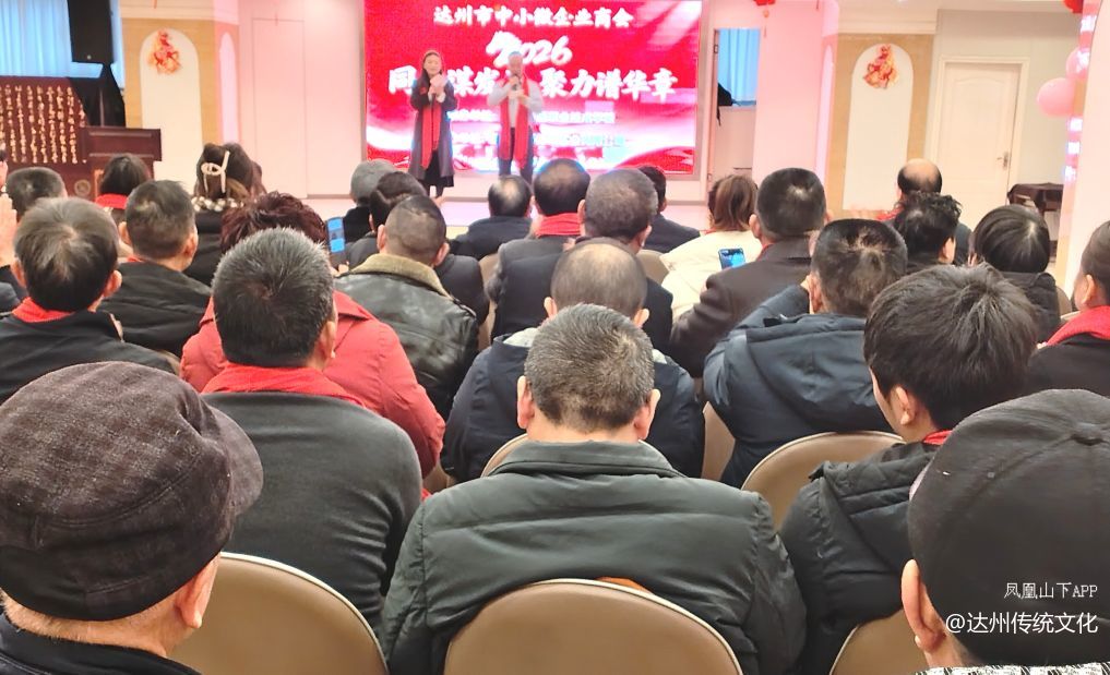 1月29日上午,寒气袭人,可在大蓉和饭店却是喜气洋洋。由达州市中小微企业商会主办的年会,重点总结了商会党建引领聚合力,实干担当促发展的做法。市工商联、市民政局有关领导,市关工委执行主任张顺帆、副主任张洪波,市老年协会办公室主任王军,达州市传统文化促进会名誉会长、国家一级作家宋小武,传促会顾问、巴山学者李开成,市传统文化促进会会长陈长春,市微电影协会会长周钢、市副食品协会书记陈江邻、市美容美发协会周成强、市现代农业发展联合会会长谢富恒,达州泰德义工协会会长张扬,达州华西职业技术学校董事长刘清,社会贤达王里开,通川区关工委执行主任刘国唐、区老年人协会会长陆祥达,区老区建设促进会会长郭建川以及红旗路、马房坝、荷叶街、二马路、胡家坝、北岩寺社区领导等50余人听取了该商会的经验做法。