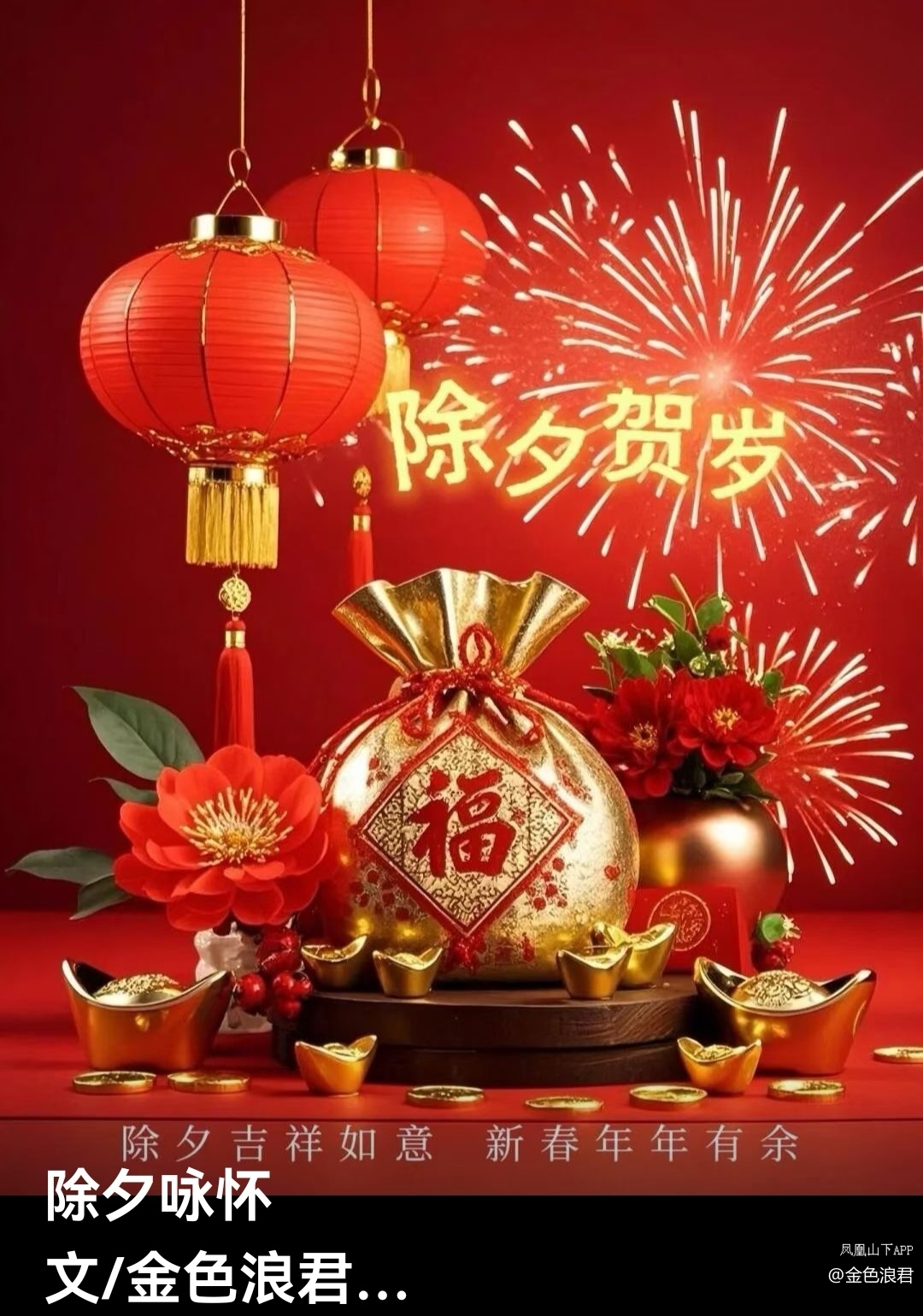 除夕又迎新,团圆十亿人。同尝天下酒,共绘九州春。爆竹庆丰岁,桃符贺白银。朝朝红日子,龙马抖精神。