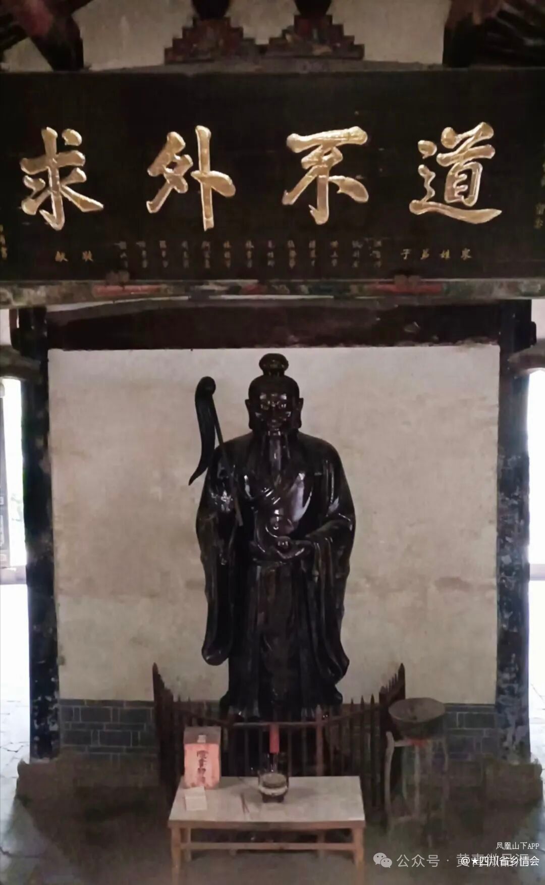 降魔殿作为观内第二大殿堂,其圆柱撑拱的凹槽内藏有36尊彩绘神仙像,形态各异,衣袂飘举。后壁神龛中的太乙真人手持拂尘,与主殿玄帝形成“降魔”与“护道”的呼应。转过降魔殿大殿,后壁神龛供奉有太乙真人神像,神像上方挂着“道不外求”的匾额,再上方还有一块扁额,上书“回头看”三个大字。