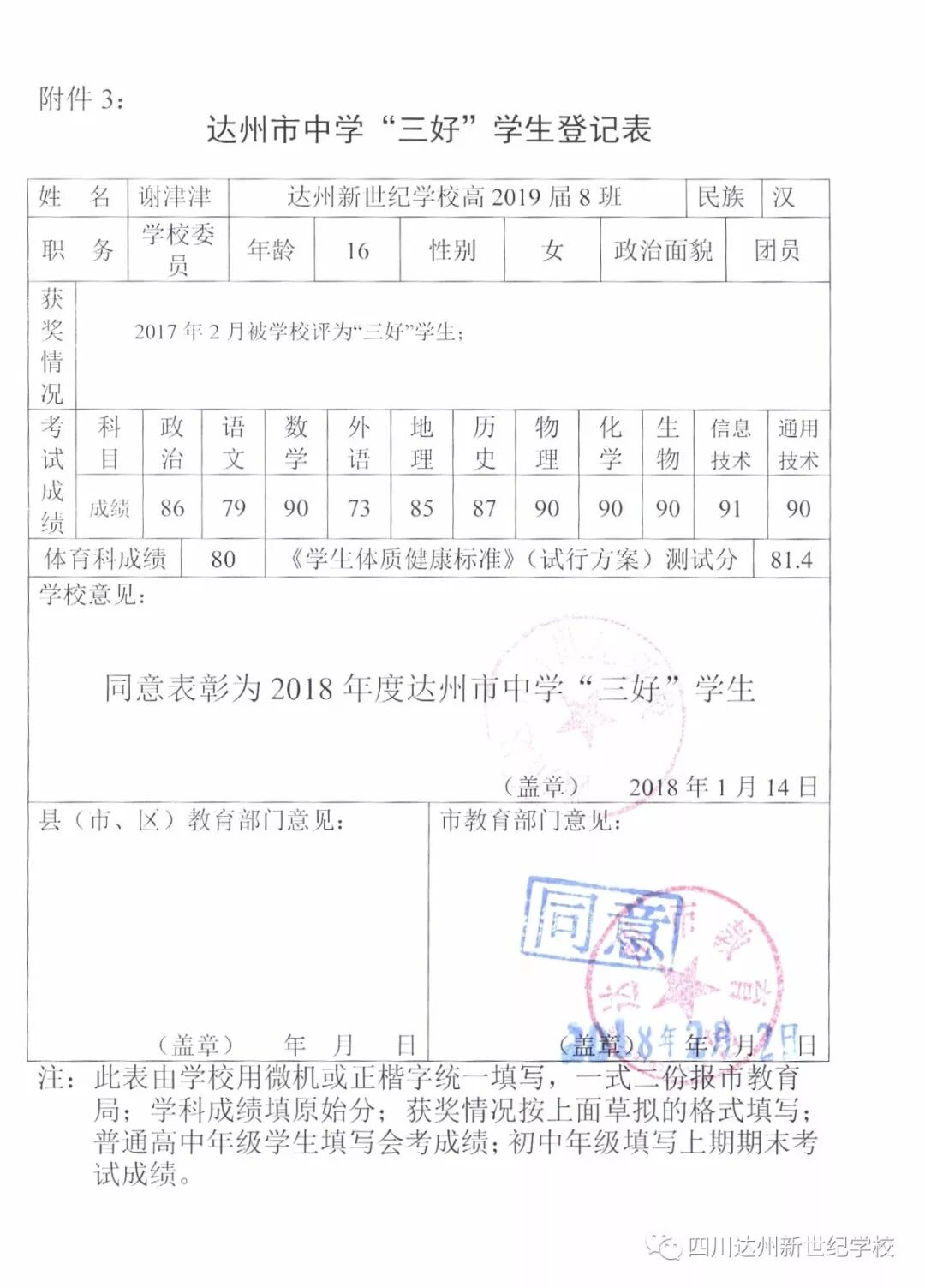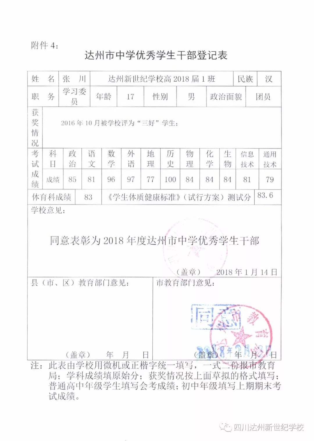 接教育局通知,在2018年达州市“三好学生”、“优秀学生干部”、“优秀班集体”评选活动中我校共计22名同学和1个班级受到表彰。现将名单公示如下: